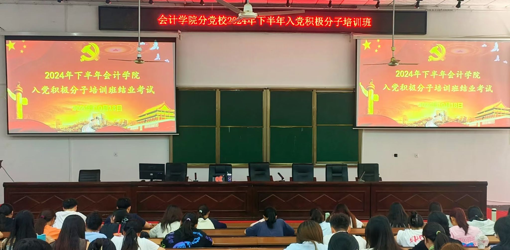 (本网讯)为进一步提升入党积极分子的政治素养和理论水平,2024年10月18日中午,会计学院在2J01教室组织了2024年下半年入党积极分子培训班结业考试,全体参训学员共124位同学参加。