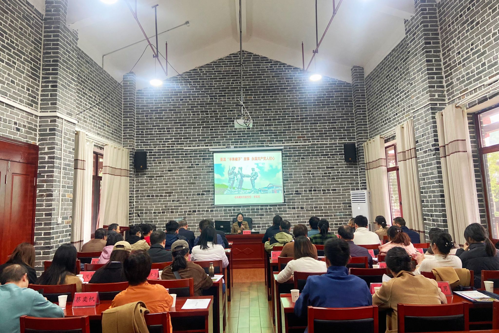 下午16:20,为进一步了解“半条被子”的发生背景,解读“半条被子”的深刻内涵,院党委特邀该党校李双双讲师以《重温“半条被子”故事永葆共产党人初心》为题为全体党员讲授党课,李老师深入分析“半条被子”故事发生的历史背景、群众基础和深远影响,并结合红军长征在汝城的历史生动阐述“半条被子”故事所蕴含的情怀、作风、精神和品格,启发我们要牢记党的初心使命,亮出党员身份,常思百姓之苦,常谋利民之事,依规依纪依法履职,密切联系群众,坚持发展为了人民、发展依靠人民、发展成果人民共享,走好新时代的长征路。