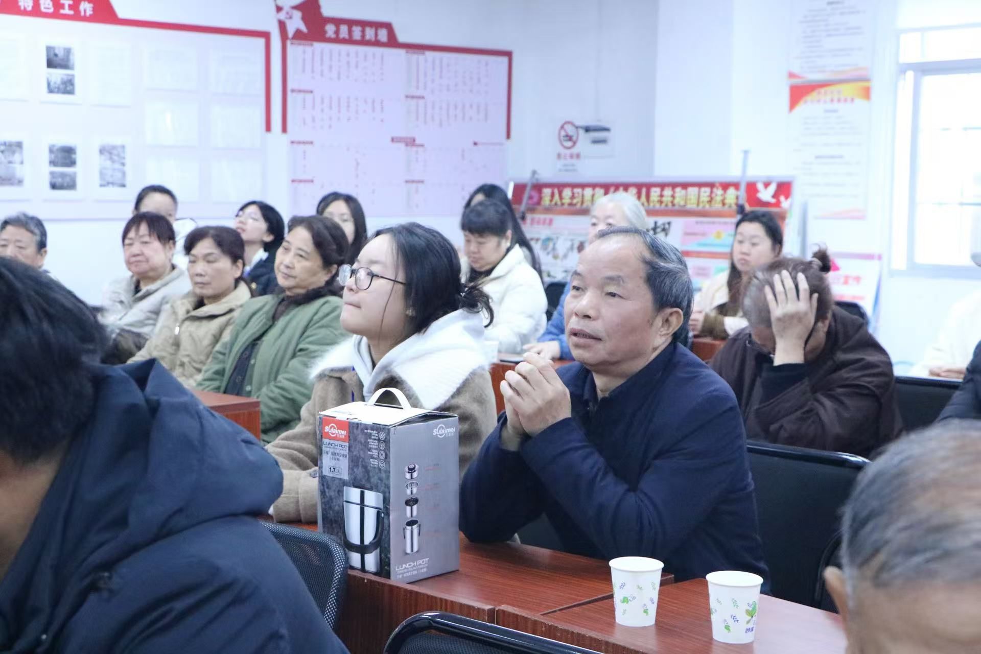 认真聆听志愿者讲课的老人们