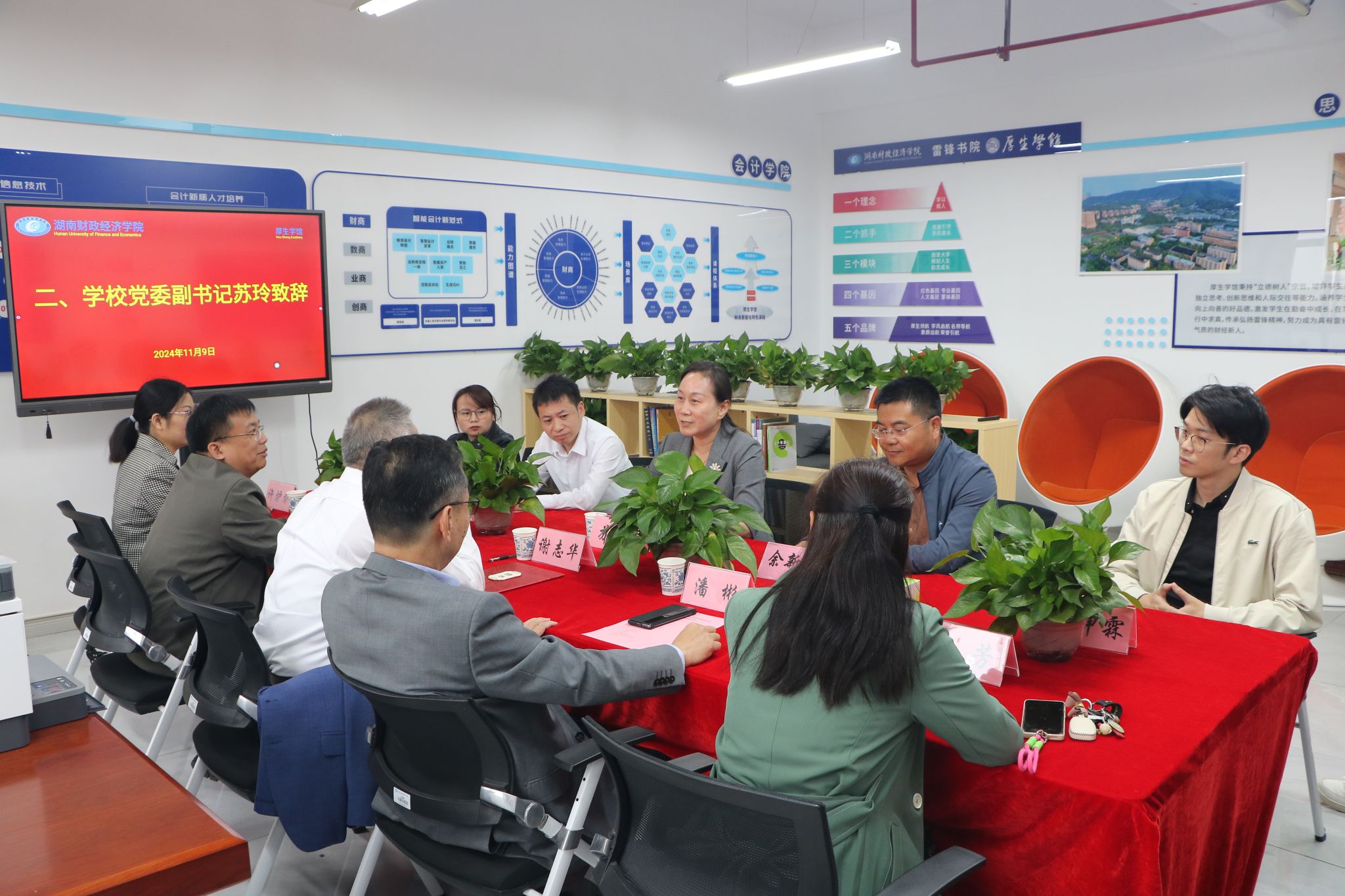 (本网讯)2024年11月9日下午,厚生学馆在至诚楼学馆内举行名誉馆长聘任仪式。北京工商大学原副校长、教育部工商管理学科指导委员会副主任委员、财政部“会计名家”谢志华教授受聘,担任厚生学馆名誉馆长。校党委副书记苏玲、会计学院院长潘彬、工商管理学院院长杨鹏,雷锋书院直属党支部书记余新明,会计学院与工商管理学院领导班子成员、三办主任以及学生代表出席了聘任仪式。仪式由潘彬主持。