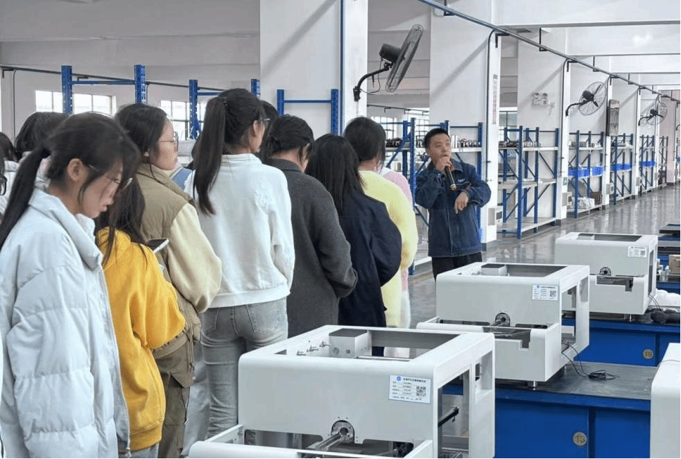 (本网讯)为进一步深化产教融合、推动校企合作,搭建学生实习实践的优质平台,11月27日下午,beat365中文在线官网会计学院副院长曾峻、学业指导老师阳敏、胡伟、李军及黄睿带领厚生学馆2024级四个班级的大一新生来到校外实习基地——长沙开元仪器有限公司,开展访企拓岗及专业认知实习活动。