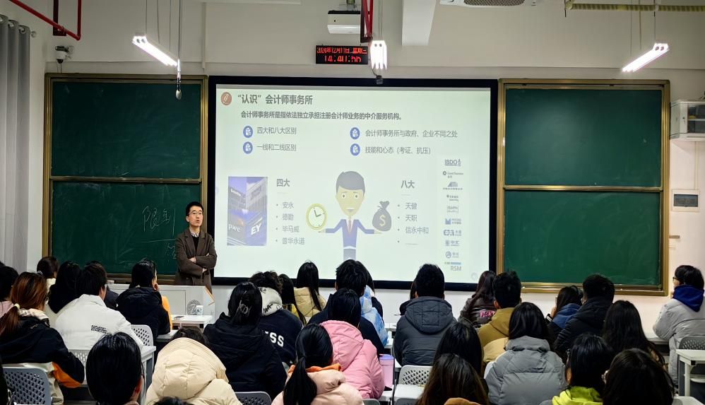 (本网讯)为充分发挥优秀校友的榜样引领作用,进一步增强学生的职业生涯规划意识,12月11日下午,厚生学馆于至诚楼L1402开展职业生涯规划讲座,本次讲座会计学院邀请到2019届优秀校友、安永华明会计师事务所长沙项目负责人胡海洋主讲,会计学院党委副书记肖芳及100余名师生代表参加。