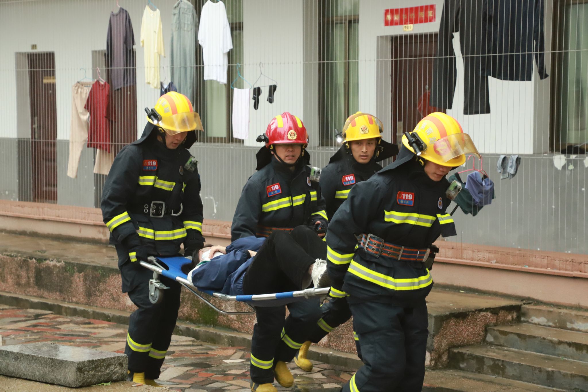 活动中雷锋救援站的消防员们还模拟了火场救人的情景。他们使用担架和背负等方式,不仅展现出熟练、规范的救援技能,还将学生安全有序地从演习现场中转移出来,让同学们更加深入地认识到消防员的辛勤付出和责任使命,当所有学生被安全救出后,现场响起了热烈的掌声。