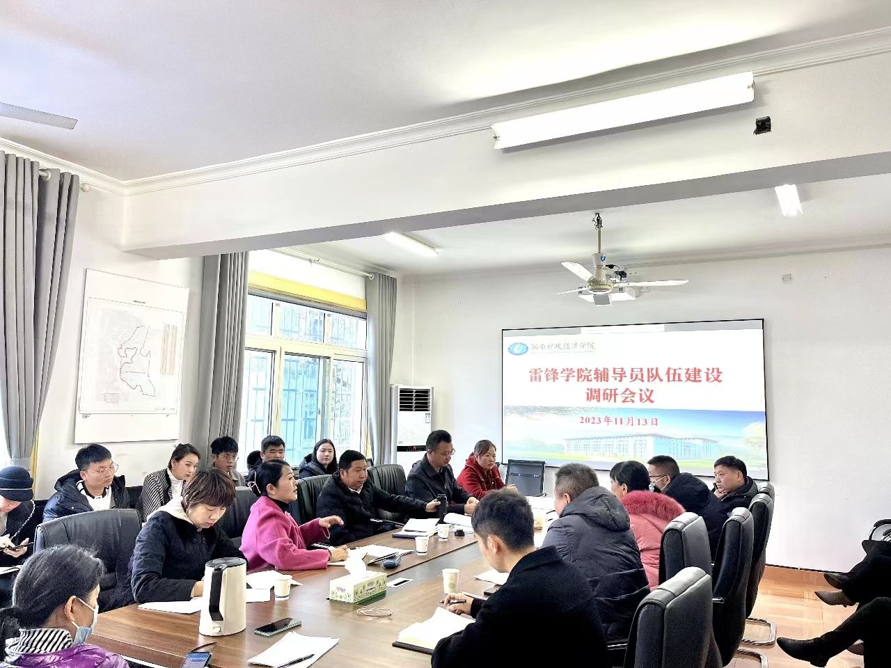 颜卫林主任介绍了雷锋学院学生工作的主要做法和经验,坚持以学生成长成才为中心,始终把学生安全教育放在首要位置,扎实做好各项工作,以雷锋精神为指引,一体化推进学生养成教育与通识教育,培养具有雷锋气质的财经新人。围绕调研内容,结合目前工作中重难点问题,进行深入研讨,并提出建议。