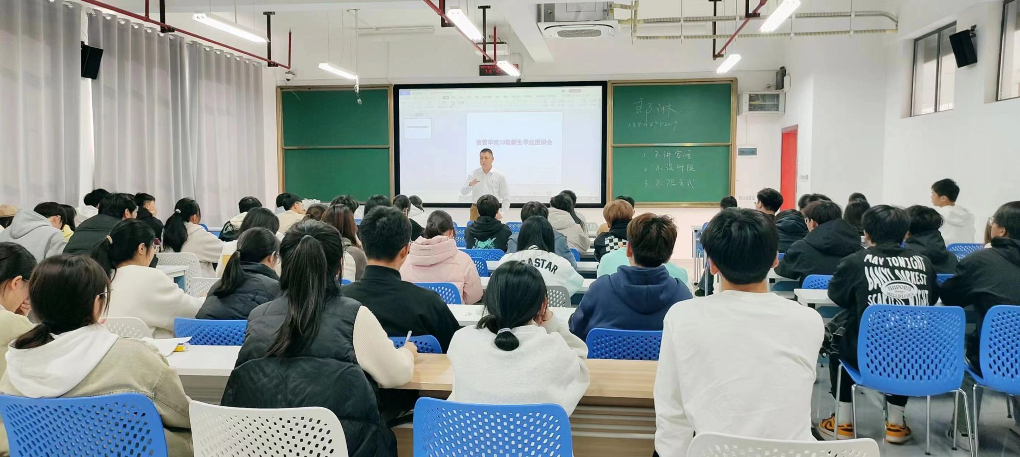 2023年12月7日下午,信管学院教学副院长郎琳受邀在雷锋学院至诚楼L1302开展了23级学业座谈会,本次座谈会主题是“大学四年学什么”,雷锋学院的同学们参加座谈。