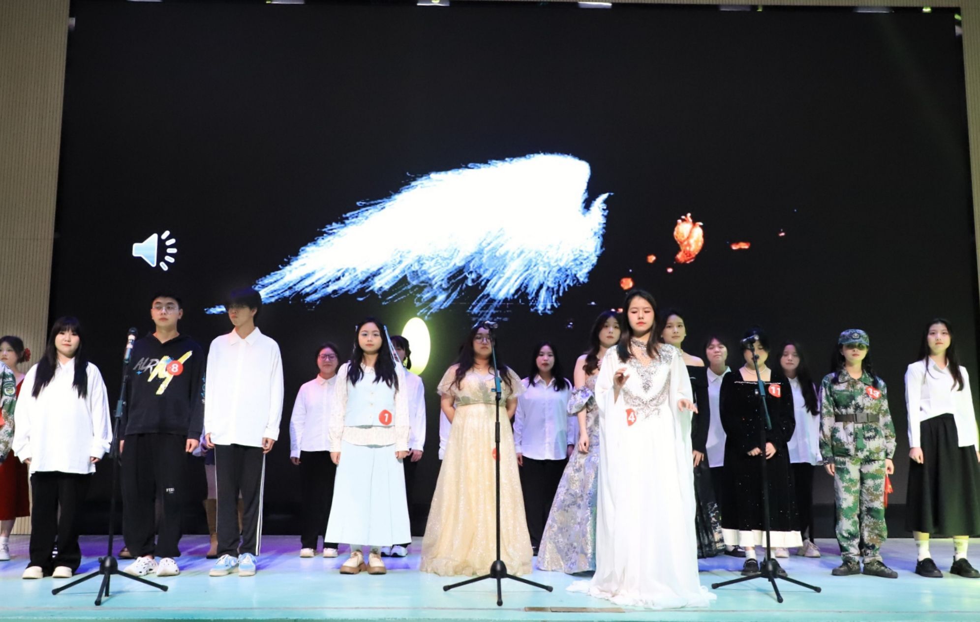 全场观众的热情参与在整场活动中,最引人注目环节是一段大合唱。学生们整齐的歌声和充满感染力的表演深深打动了在场的每一位观众,将全场的气氛推向了高潮。观众们不仅为学生们精彩的表演鼓掌,更被这种青春的活力和精神所感染。