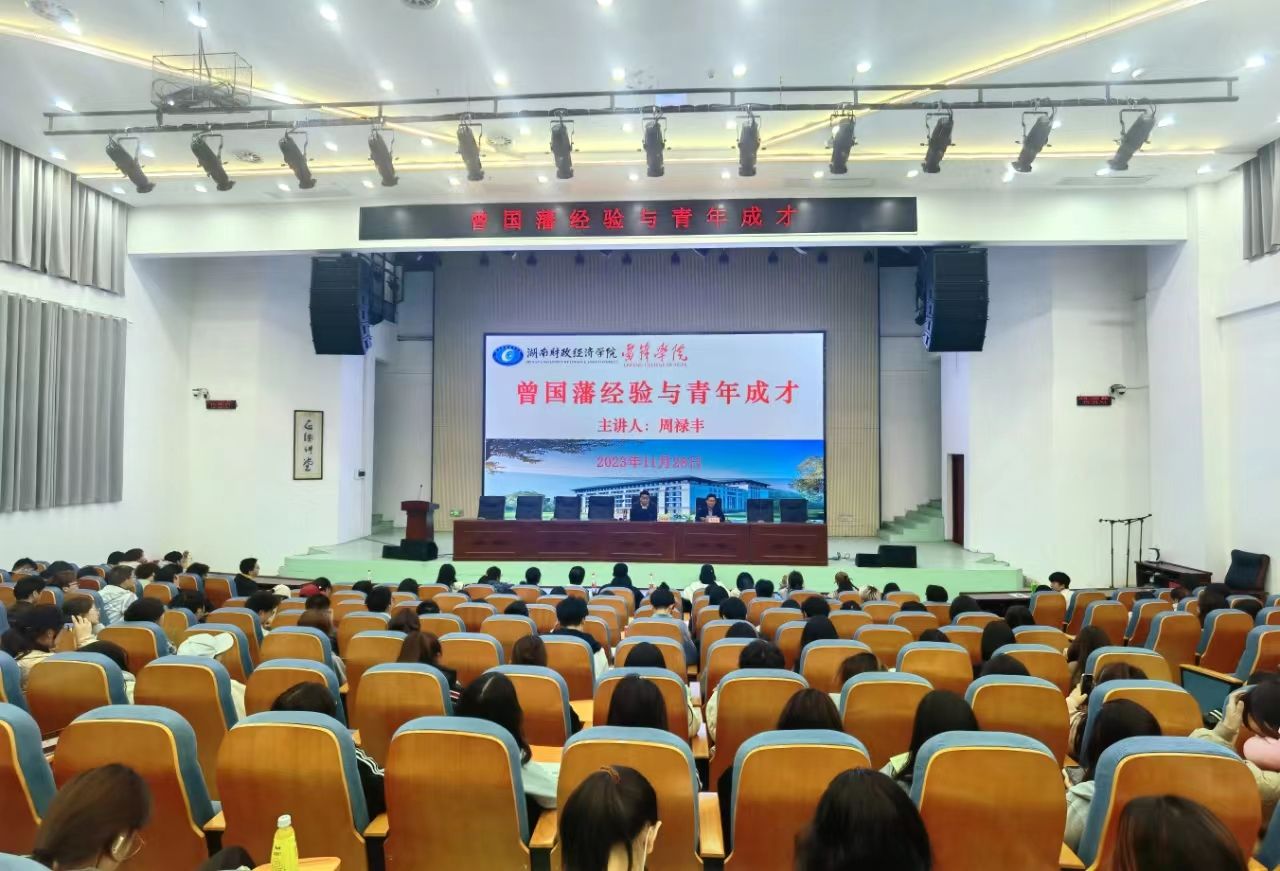 周禄丰先生著有《通天血路:太平天国往事》、《战安庆:曾国藩的中年突围》等,曾代表湖南教师作为国务院侨务办援外专家赴意大利交流,在凤凰卫视《凤凰大视野》、湖南教育电视台《湖湘讲坛》担任电视节目主讲。周禄丰开场先介绍了晚晴名臣曾国藩的生平,从曾国藩的独特本领到曾国藩的统帅魅力,再到曾国藩的思维模式,结合自己对曾国藩的理解给我们讲了精彩的一课,让同学们从一些新的角度去更深刻了解曾国藩传奇的一生,对于我们的青年学生进行启示。