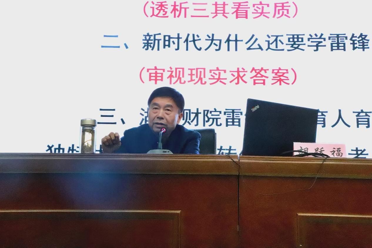 胡跃福从“雷锋其人与雷锋精神的实质”入题,回答了“新时代为什么还要学雷锋”这一问题,结合丰富详实的资料,多角度多层次解读了雷锋同志短暂而光辉的一生,全面诠释了雷锋精神的丰富内涵。