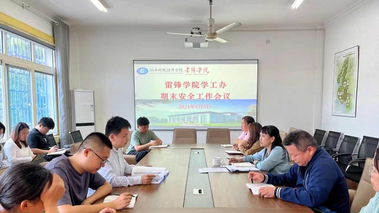 6月5日雷锋学院学工口在行政楼210召开期末安全工作专题会议,布置期末学工口各项工作,强化校园安全各项举措和注意事项。会议由雷锋学院直属党支部副书记黎红梅主持。