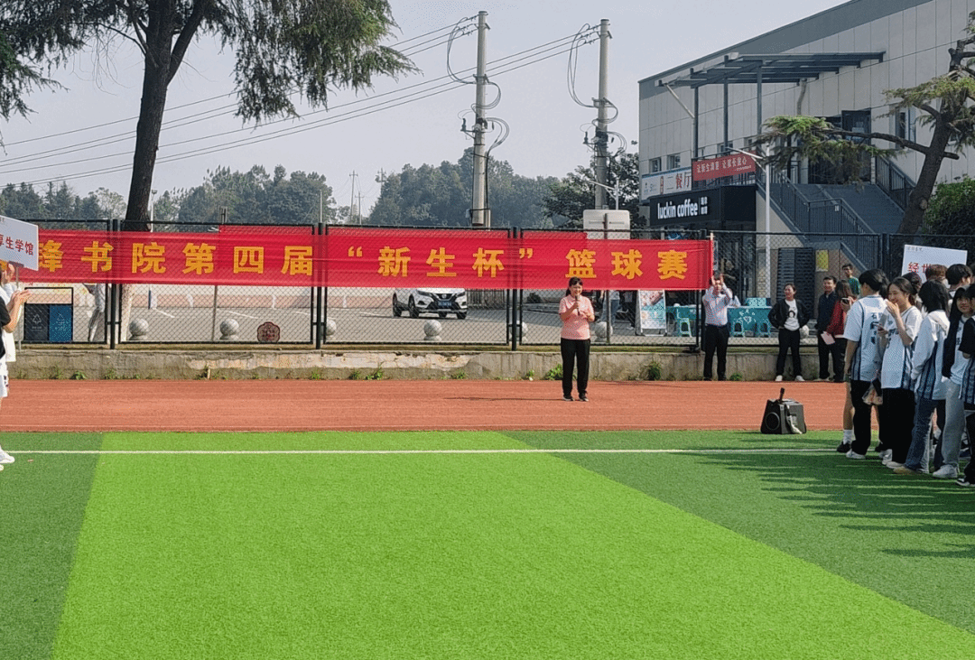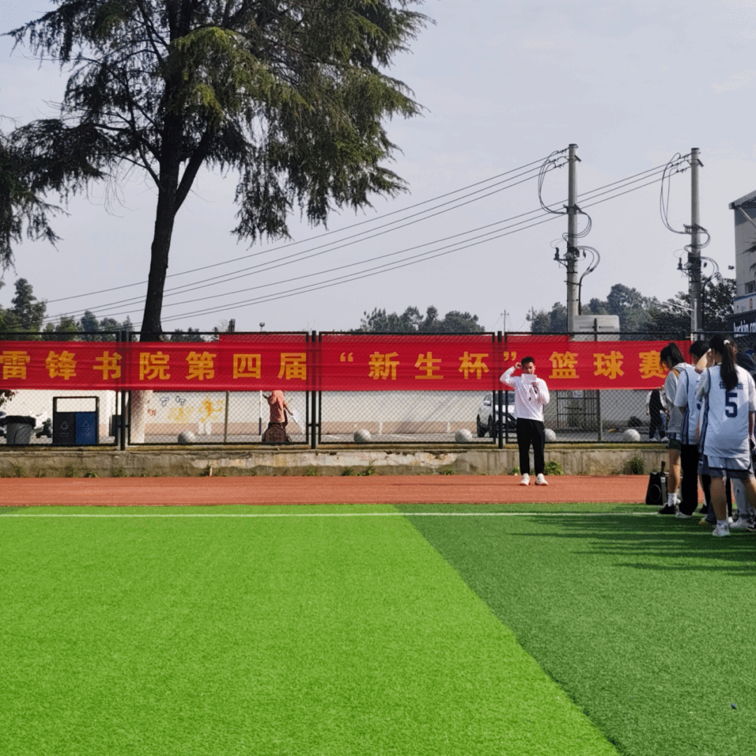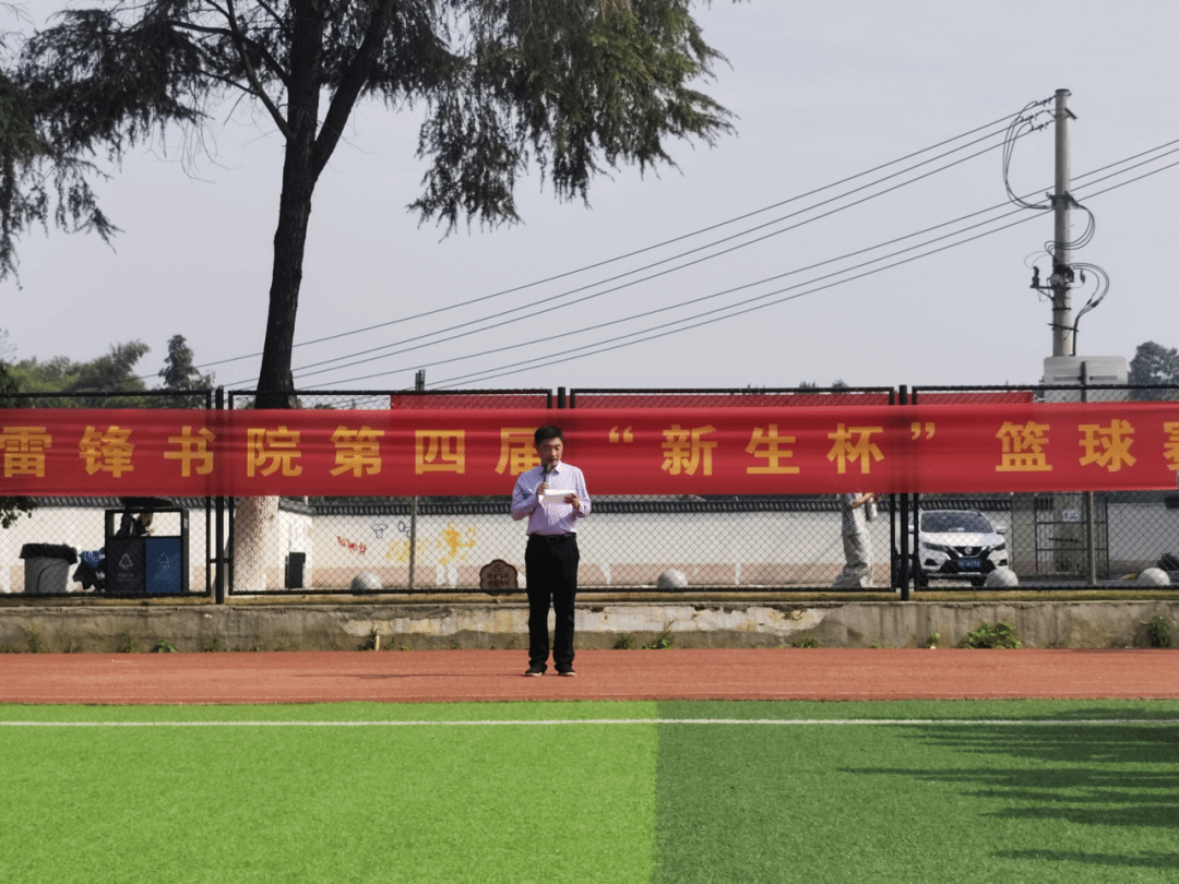 雷锋书院直属党支部副书记黎红梅老师宣布“新生杯”篮球赛开幕并为本次赛事开球。双方球员迅速进入状态,他们运球突破、传球配合、投篮得分,每一个动作都充满了青春的活力与竞技的热血。