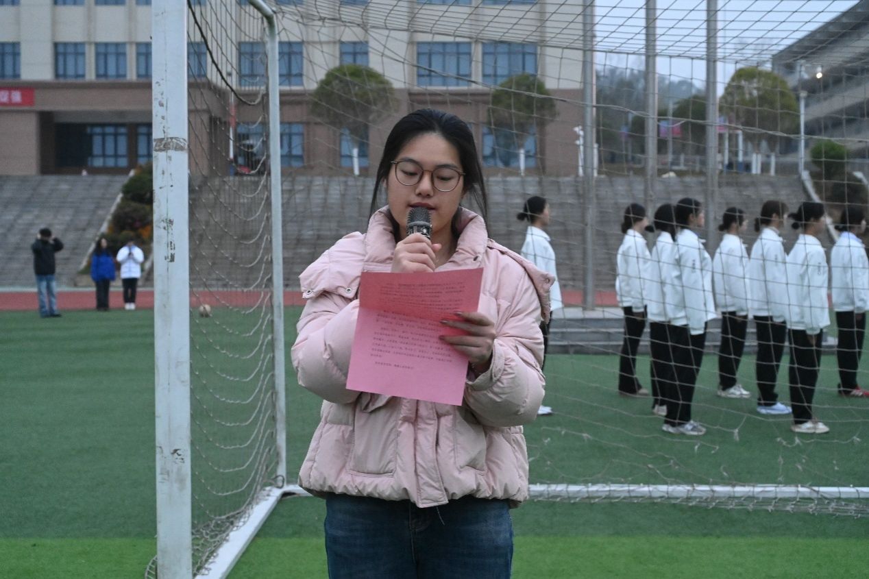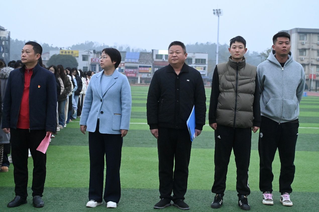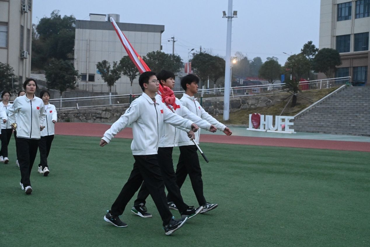 “齐步——走!”随着一声铿锵指令,国旗护卫队队员身着整齐制服,迈着铿锵有力的步伐从操场入口走来。他们身姿挺拔如松,脚步声整齐划一、掷地有声,洪亮的口号响彻校园上空,气势恢宏震撼人心。在全体师生的注目下,五星红旗冉冉升起,迎风飘扬。同学们目光坚定注视着国旗,凛冽寒风中,一张张年轻的脸庞尽显精神抖擞,用蓬勃朝气诠释着青年学子的爱国热忱。