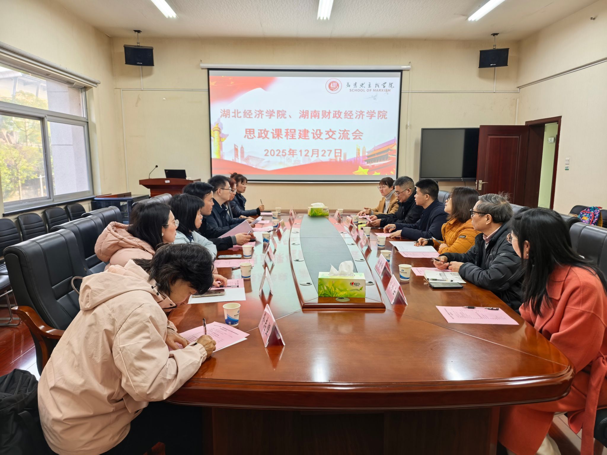 12月27日上午,湖北经济学院、beat365中文在线官网思政课程建设交流会在我院举行。湖北经济学院马克思主义学院形势与政策教研室主任代保平、中国近现代史纲要教研室主任叶欣明、科研平台办公室主任杨钰琪带队参与交流。我院党总支副书记游志能、中国近现代史纲要教研室主任罗财喜、形势与政策教研室主任周奕及相关教师参加本次交流活动。