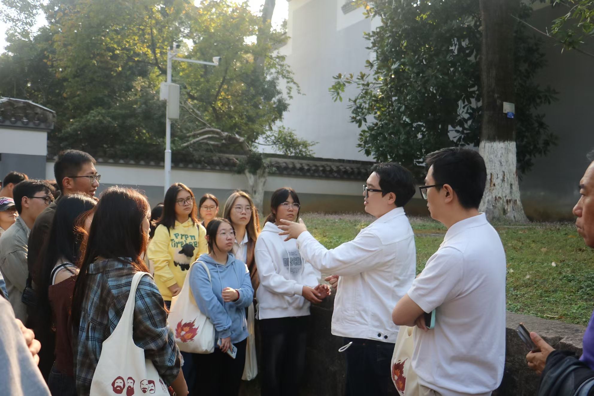 随后,一行人前往岳麓书院。作为千年学府,岳麓书院承载着深厚的文化底蕴和革命精神。本次活动邀请了湖南大学博士理论宣讲团团长、马克思主义学院2023级博士生刘邦志作《岳麓书院:重走习近平总书记岳麓书院考察路线》专题介绍。刘邦志博士的讲解深入浅出,让同学们更加深入地了解了岳麓书院的历史和文化,同时也感受到了革命精神在这里的传承与发扬。