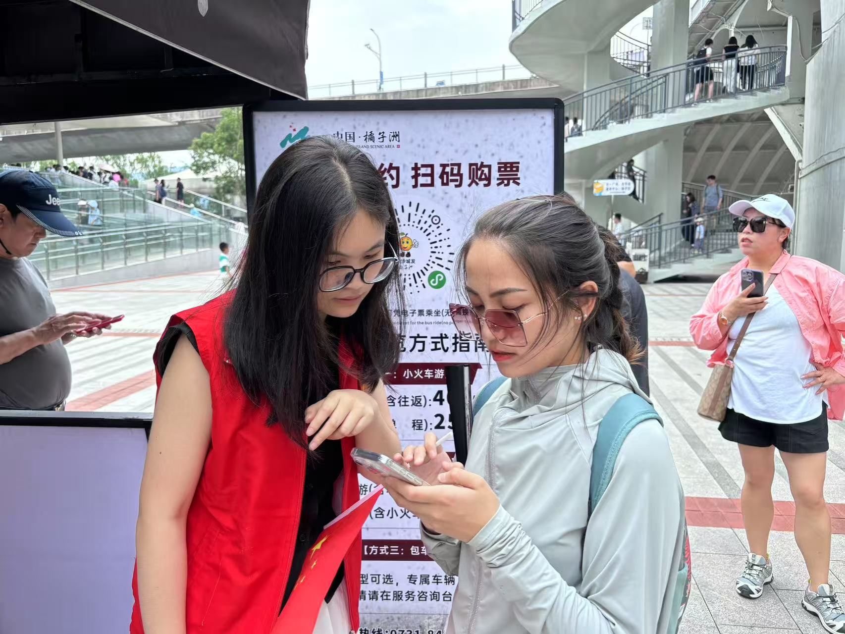 活动当天,马院学子早早抵达橘洲。他们身着统一的志愿者服装,迅速分组,有条不紊地投入到志愿服务工作中。活动中,马院学子以耐心的态度为游客提供景区预约、观光车购票指引,以温婉的语气规劝不文明行为,收获了游客们真挚的感谢和衷心的支持。活动最后,志愿者们有序归还马甲。