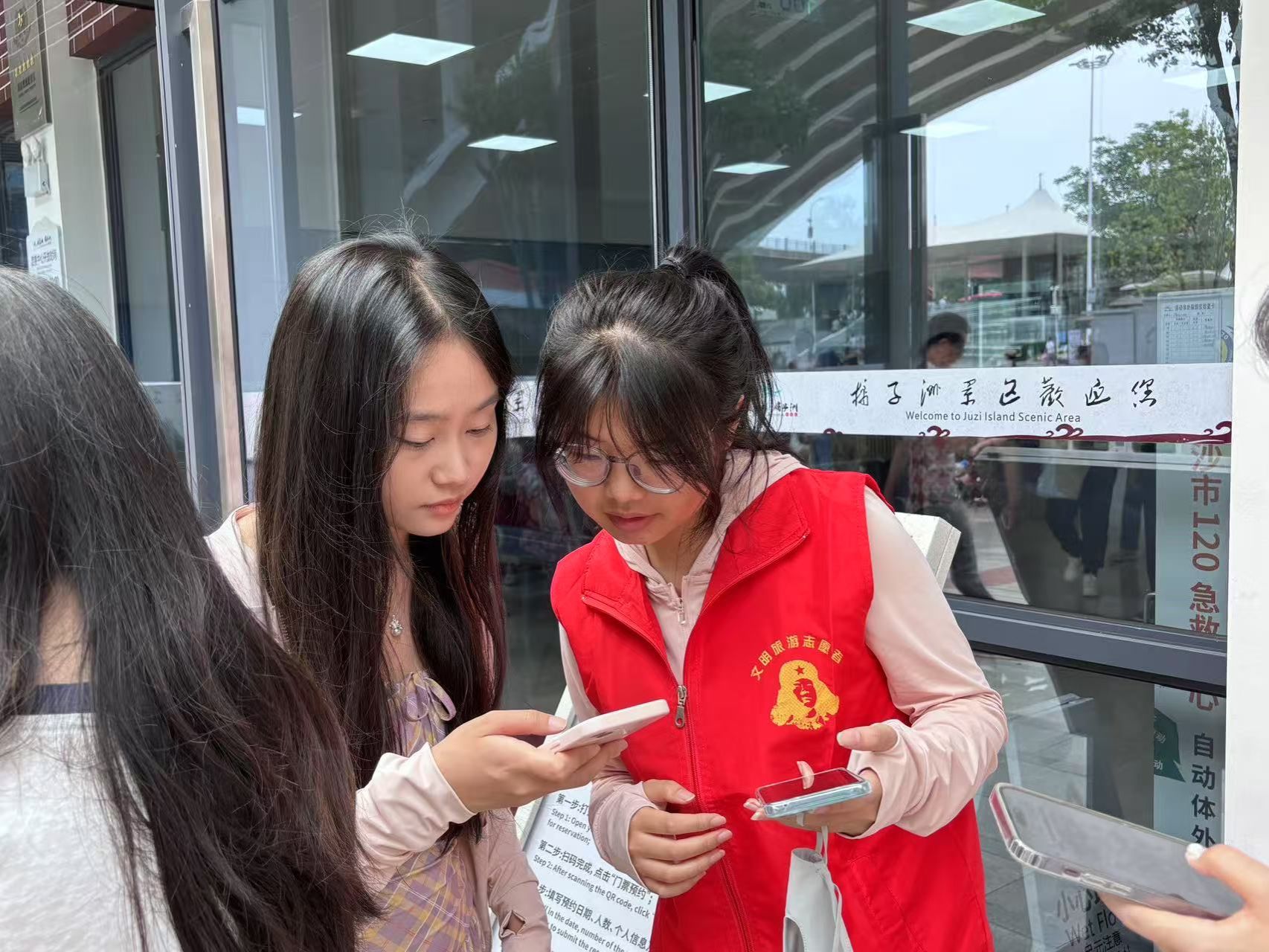 (图为我院学子为游客进行景区预约流程讲解)