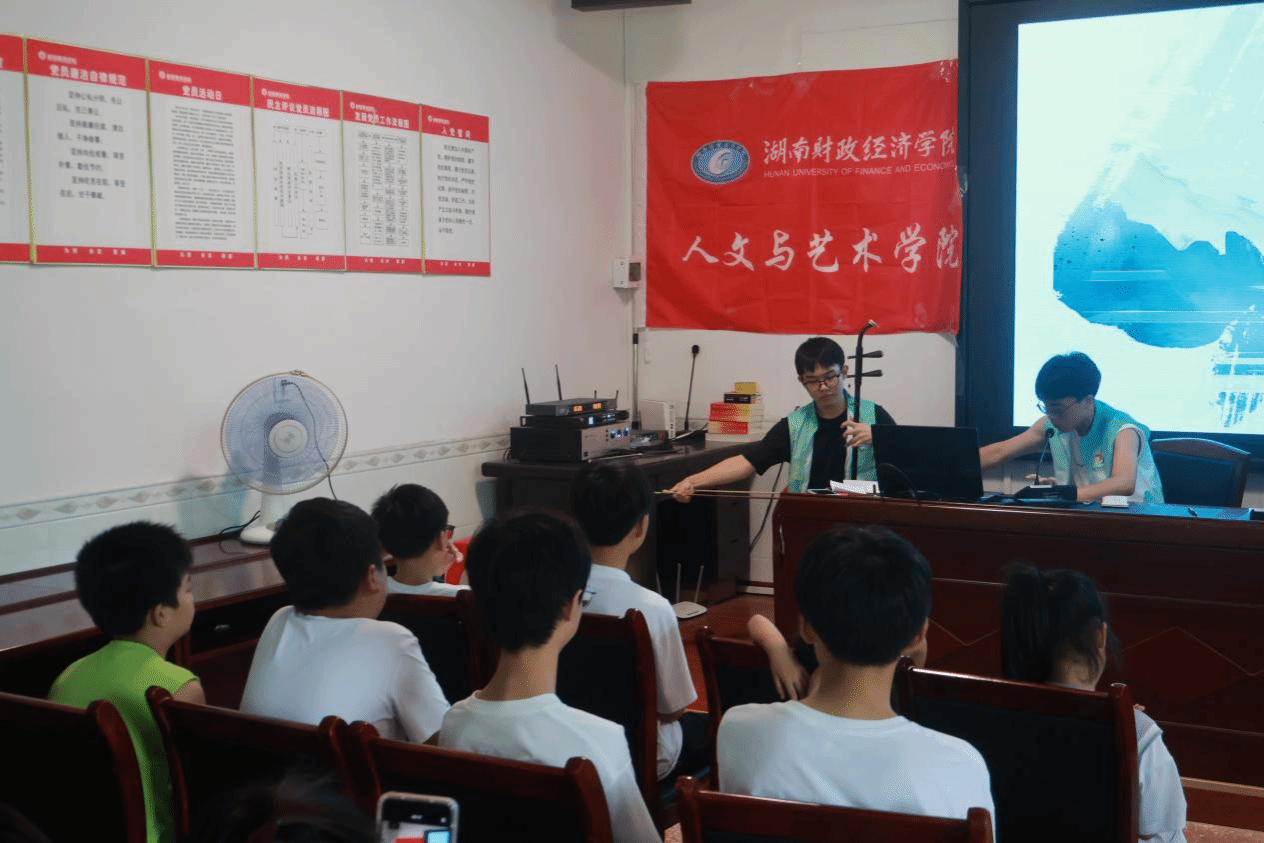 (本网讯)7月9日,人文与艺术学院志愿先锋队在安化县久泽坪村持续开展“播撒艺术的种子”暑期志愿服务实践。围绕音乐、舞蹈、书法三大艺术门类,通过知识讲解、经典赏析与实践体验相结合的形式,为乡村儿童开启了一场丰富多元的艺术启蒙之旅。