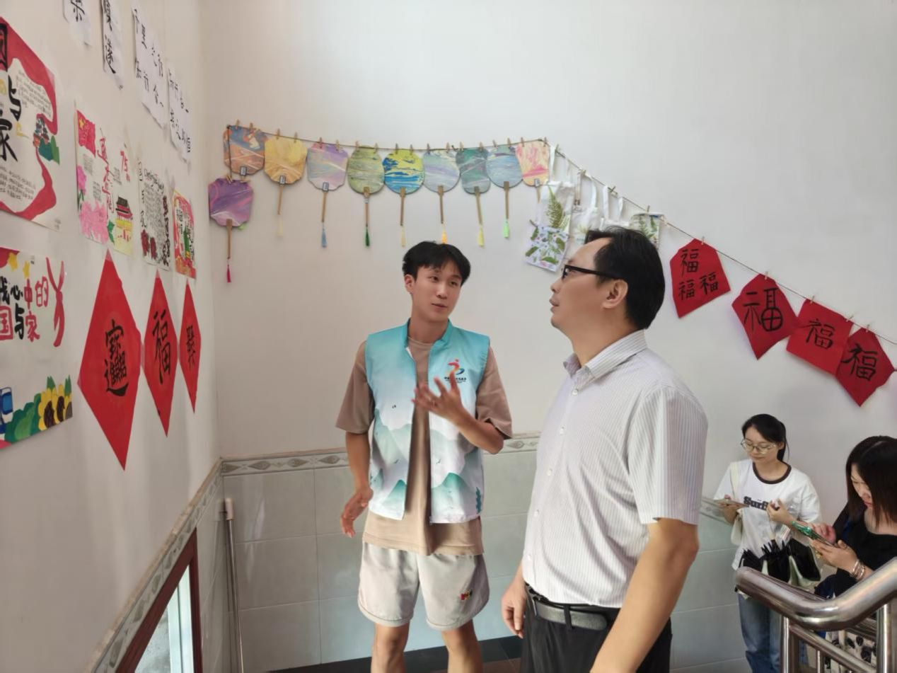 慰问现场,葛干忠书记认真欣赏孩子们的书法作品和手工制品,询问课程设计与实施细节,对队员们将红色基因融入艺术教学的创新做法给予肯定。他与队员们亲切交流,鼓励大家持续深耕乡村美育课堂,让艺术的种子在乡土扎根,让孩子们在美育熏陶中涵养品格、快乐成长,