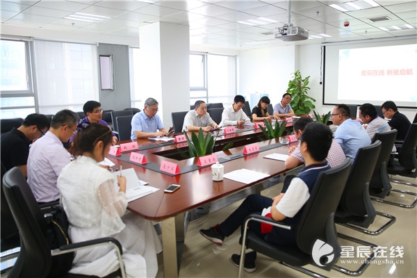 星辰在线党委副书记、总编辑何旭,总经理涂坚毅对肖湘愚一行的到来表示热烈欢迎,并就下阶段双方合作的具体事宜进行洽谈。