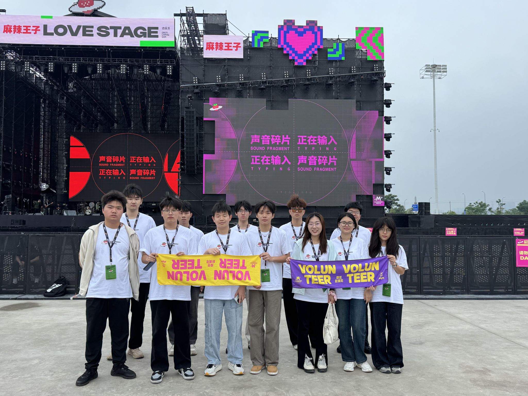 在草莓音乐节的后勤、场地、安保、贵宾室等各个区域,身着志愿者文化衫的同学们忙碌的身影随处可见。后勤组的同学热情引导观众入场,高效搬运各类物资,确保活动的物资供应顺畅;场地组的同学一丝不苟地检查表演场地的安全情况,为演出的顺利进行保驾护航;安保组的同学坚守岗位,维持现场秩序,为观众营造安全、和谐的观演氛围。他们用实际行动诠释着奉献精神,在草莓 音乐节的舞台上默默贡献着自己的青春力量。