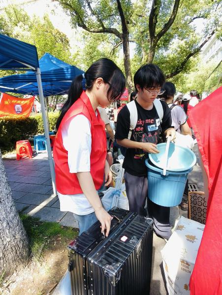 活动期间,志愿者们统一身着的红色马甲格外醒目,成为了校园里一道充满活力的风景线。他们的身影遍布搬迁现场的各个角落,无论是在宿舍楼下帮助搬运大件行李,还是在楼道里协助学生整理物品,都展现出了高度的责任心和奉献精神。他们以认真负责的态度完成各项任务,为雷锋书院学子提供了切实帮助。