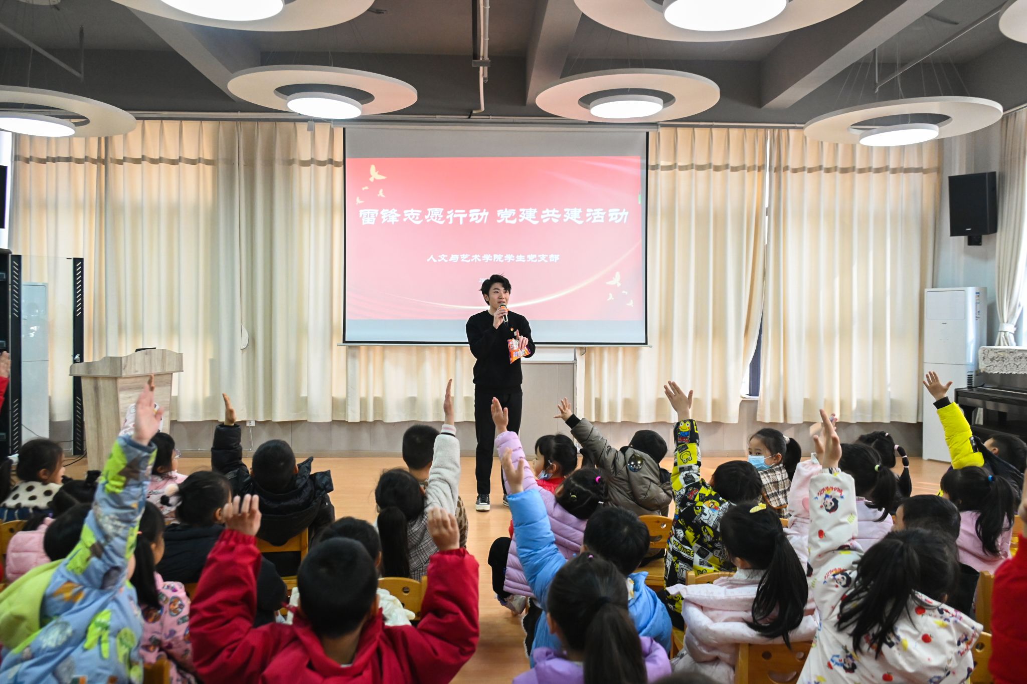 (本网讯)为进一步加强党员党性教育,充分发挥党建引领实效,积极推动雷锋精神文化建设。12月27日上午,人文与艺术学院学生党支部书记欧璐率支部全体党员及部分积极分子,赴西大门社区幼儿园开展“讲雷锋精神,学雷锋精神”主题党建活动,让雷锋精神与爱国情怀厚植于幼儿心中。
