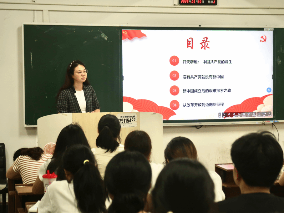 (本网讯)5月20日晚,人文与艺术学院在3105教室开展2025年上半年入党积极分子培训班专题讲座。本次讲座主题为《中国共产党百年光辉历程》,由教师党支部书记陈洁主讲。