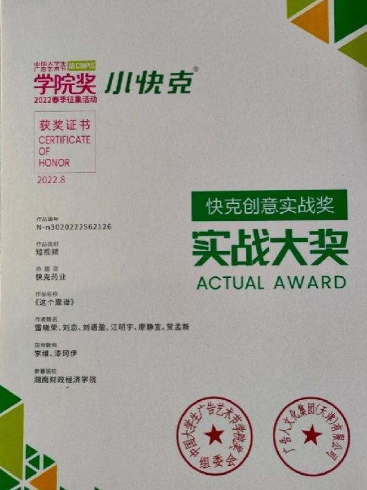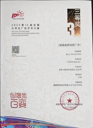 大学生广告创意比赛中荣获佳绩 斩获大学生纪实短片二等奖