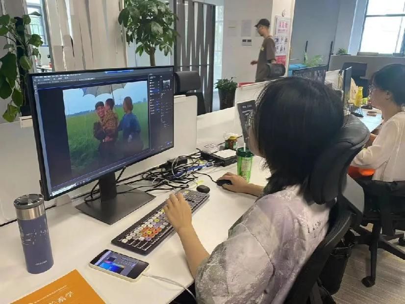 网络与新媒体系学生在马栏山视频工业园参与老电影上色修复工作