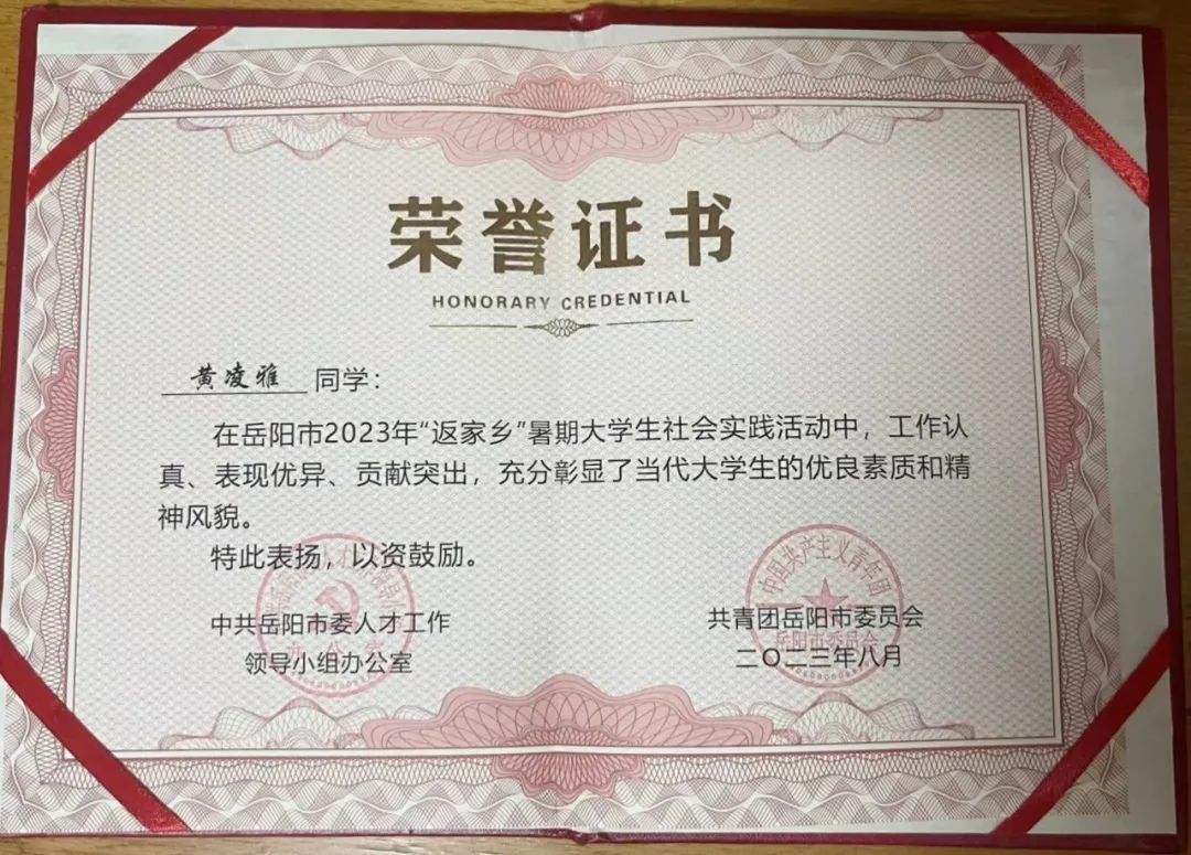 专业学生暑期社会实践获得表彰