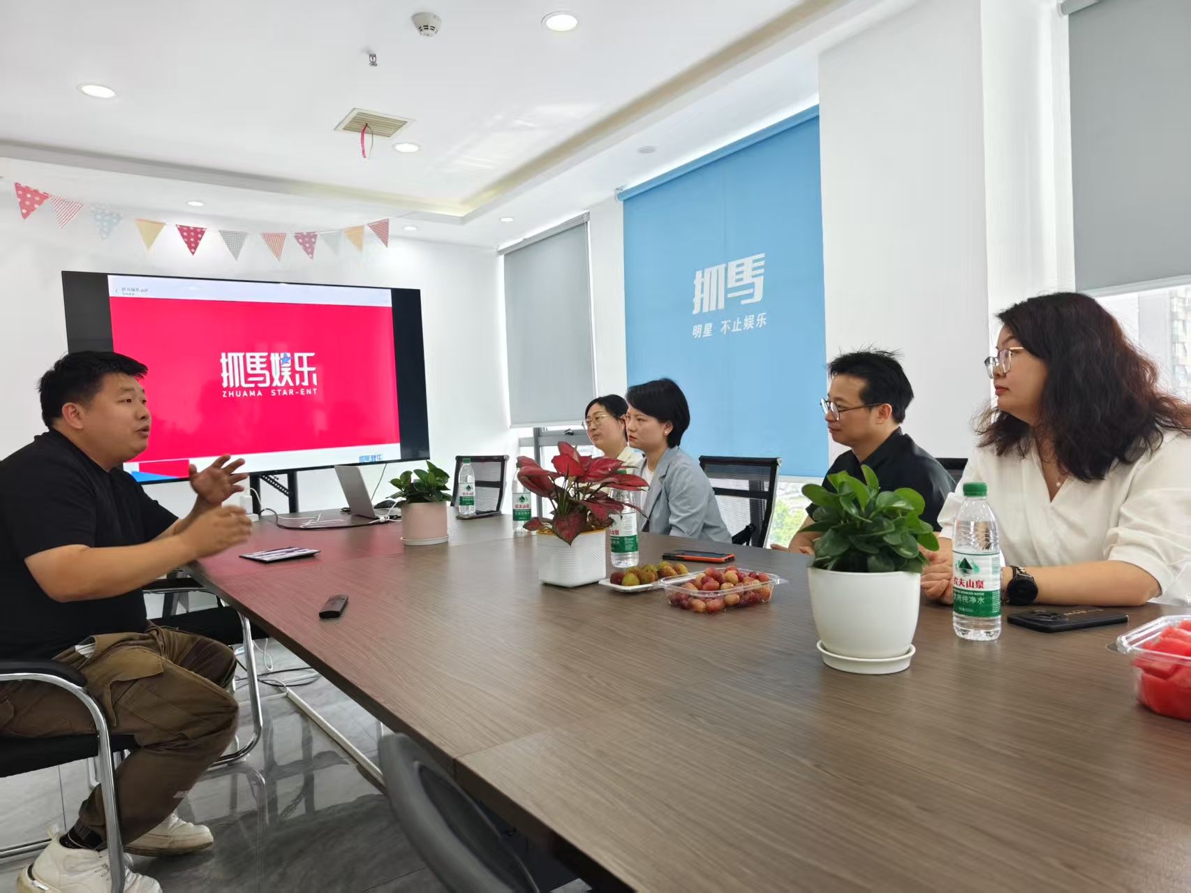 肖海涛向学院领导介绍了公司的发展历程、业务布局及未来规划进行了详细介绍。他表示,抓马星娱传媒始终高度重视人才储备与培养,beat365中文在线官网人文与艺术学院扎实的专业教学体系与浓厚的学术氛围,为网媒专业人才的成长提供了肥沃土壤。肖海涛期待与学院建立全方位、多层次的合作关系,在人才培养方案制定、课程体系优化等方面积极贡献企业力量,同时也向财院怀揣传媒梦想、具备专业特长的网媒学子发出诚挚邀请,希望他们能加入抓马星娱大家庭,共同創造短视频娱乐领域的新辉煌。