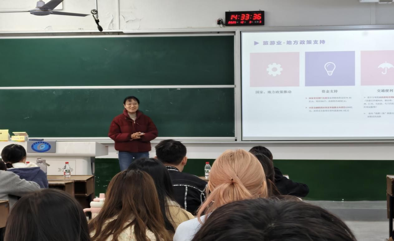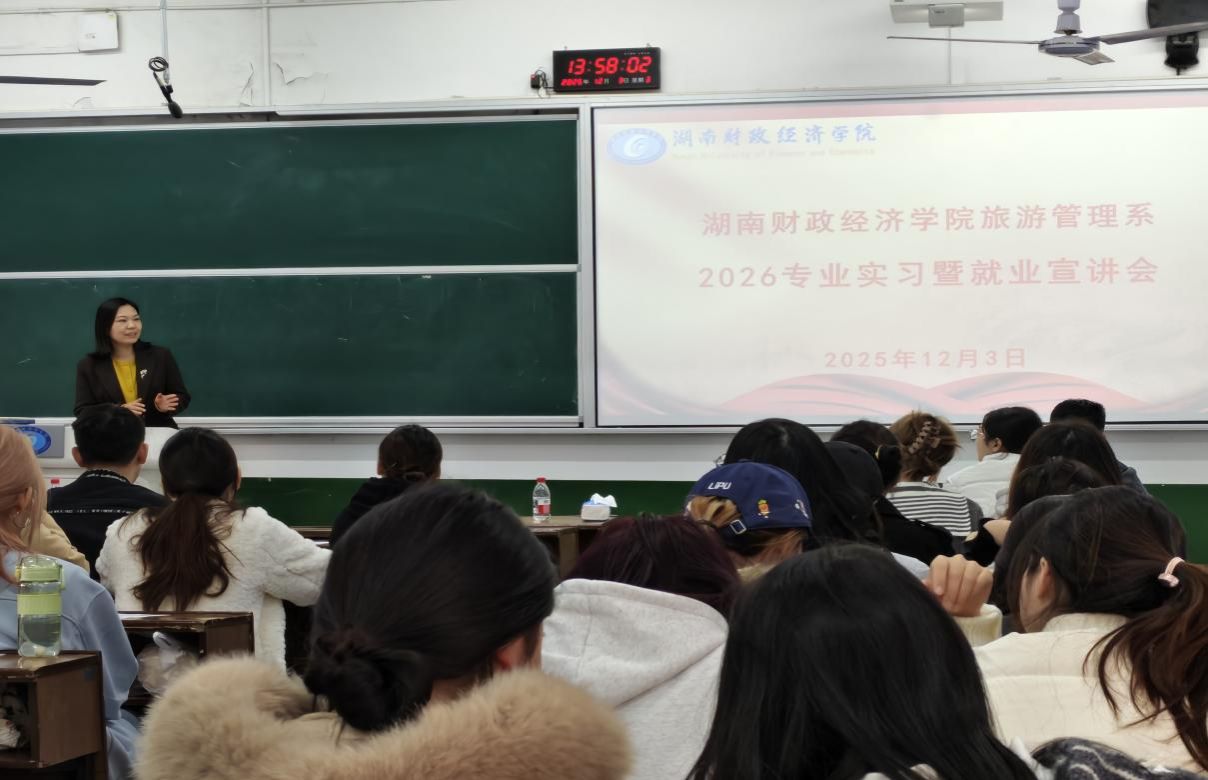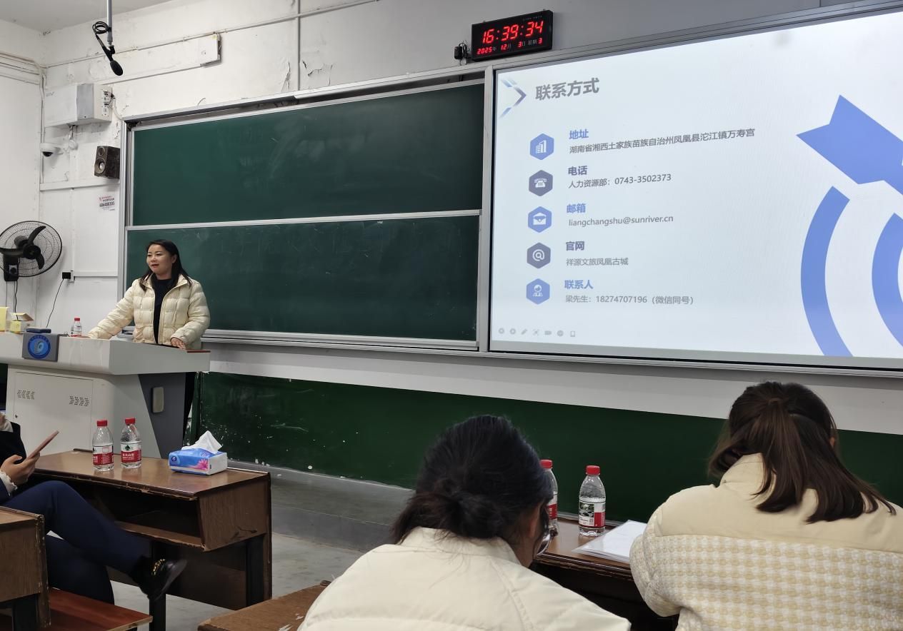 (本网讯)12月3日下午,旅游管理系成功举办文旅企业实习就业宣讲会,邀请来自省内外的7家优质文旅企业进校宣讲。学院党委副书记杨艳、2023级旅游管理专业全体学生参加活动。宣讲会由旅游管理系主任王亚辉主持。
