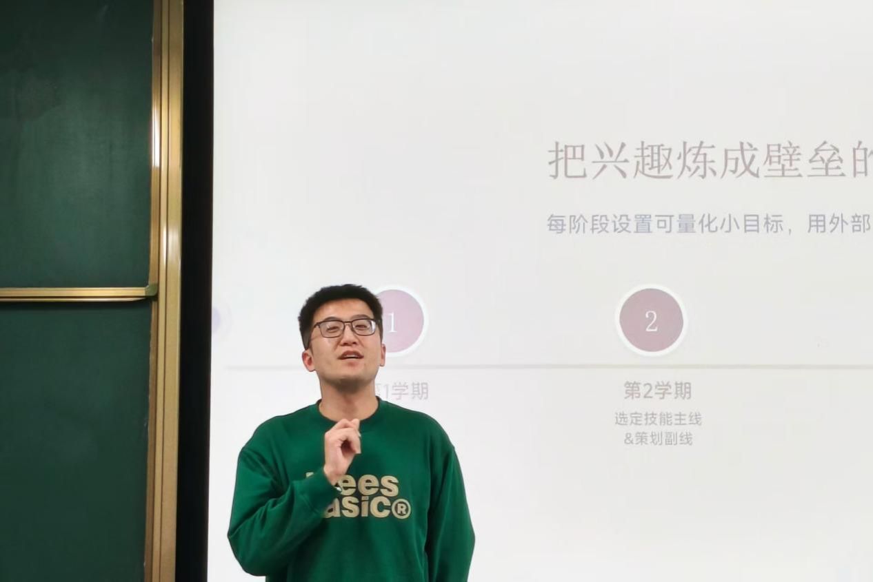 杨家辉老师从自身专业性角度出发,建议新生“以赛代练”,尝试将课本知识贯通应用与实践中,进而聚焦于研究探索自己喜欢的方向和能力。他在分享中强调社会“学科交叉融合”的趋势,并鼓励文产学生培养数据统计与项目分析能力,从而成为集文化管理、产业分析、艺术鉴赏等能力为一体的综合型人才。