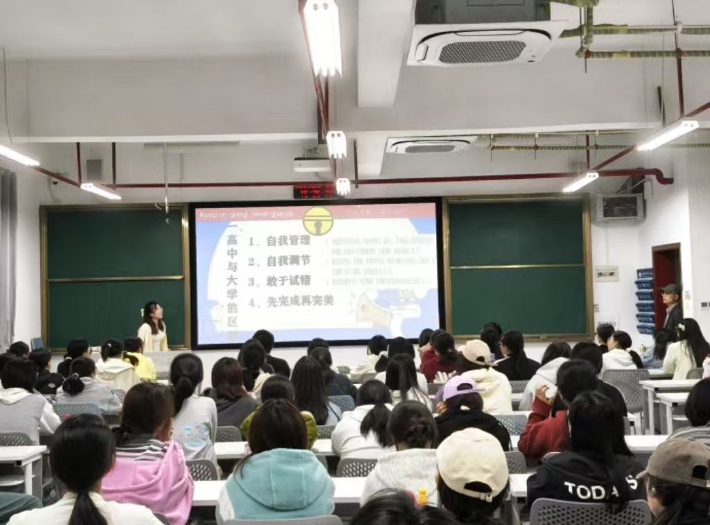 彭涛老师聚焦于新生从高中到大学的过渡阶段,围绕“自我成长”与“生活适应”展开温情寄语。她指出,大学是认识自我、探索热爱的重要阶段,学生应在专业宽泛的背景下“找到真正感兴趣的方向”,避免盲目追逐证书,而要基于内心热爱规划未来。她还特别提醒同学们重视英语能力与身心健康,希望每位学生都能在大学四年中度过美好而有意义的时光。