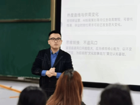 李维老师则以严谨而不失幽默的语言,围绕学生的常见困惑展开交流。他强调,文化产业不是追逐“吃香岗位”的捷径,而应着眼于成为“领头羊”,拒绝盲目跟风。他指出,真正的竞争力来自于“手上有作品,兜里有实力”,并鼓励学生积极参与各类赛事,在实践中锻造能力。他以“信专业、信老师、更要信自己”作结,勉励新生珍惜在文化产业管理专业的学习机会,以扎实积累开启属于自己的“春天”。