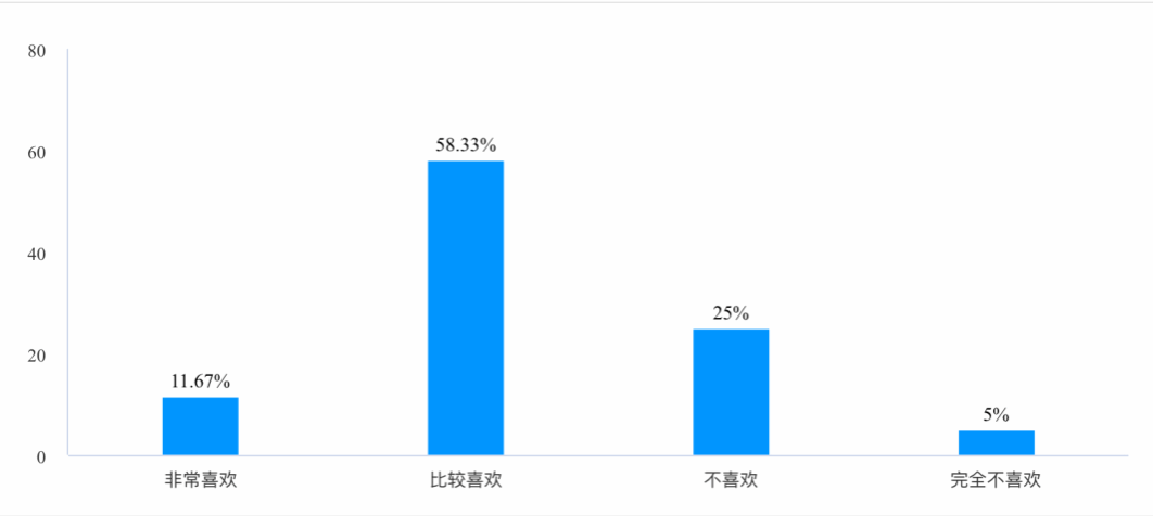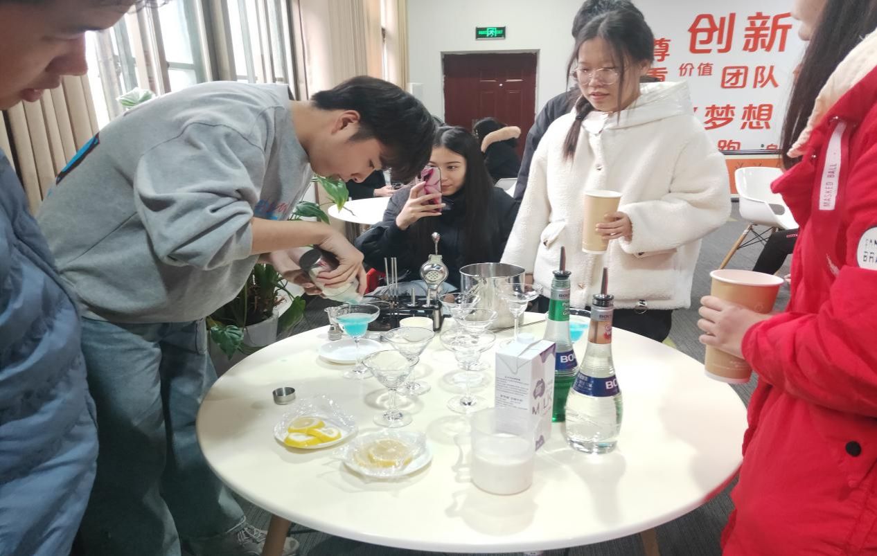 坚持参与式教学,深受学生喜爱,被督导评为优秀教学案例。2019年到校任教以来,王亚辉开设了《鸡尾酒调制》《酒水知识与酒文化》等选修课,王亚辉在讲授酒水课程时特别注重培养学生的鸡尾酒创作能力,设置了品酒、斟酒、摇壶、抛瓶、调制、装饰物制作等实践环节,并以身示范将这些技能传授给学生(图2),学生再根据老师的示范亲自动手实践(图3-图8)。《鸡尾酒调制》作为全校通识选修课程,深受学生喜爱,问卷调查结果显示本校学生对该门课程感兴趣的同学比例达70%(图9),且自2019年开始该课程以来,几秒钟时间内选择该课程的人数就达到学校限定的人数规模。2021年,《鸡尾酒调制》课程被学校推荐为全校23门省级一流课程之一(图10)。《酒水知识与酒文化》作为专业选修课程在2025年4月的督导检查中被作为全校优秀课程案例分享(图11)。