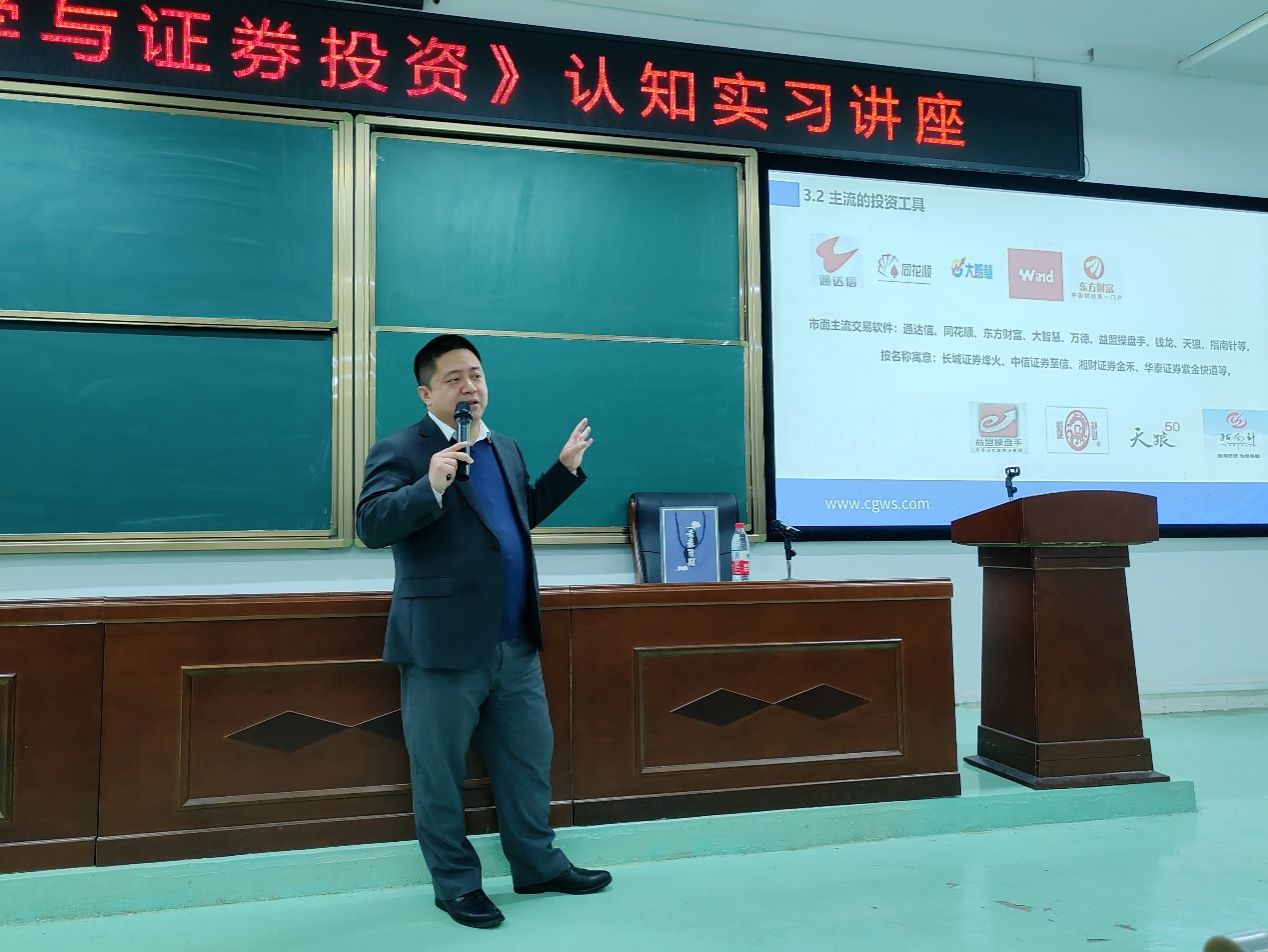 3月26日下午,数学与统计学院邀请长城证券公司资深投资经理曾昊在雷锋校区至诚楼L1115阶梯教室为2023级金融数学专业的学生做专业认知实习讲座。讲座由数学与统计学院副院长范国兵主持。