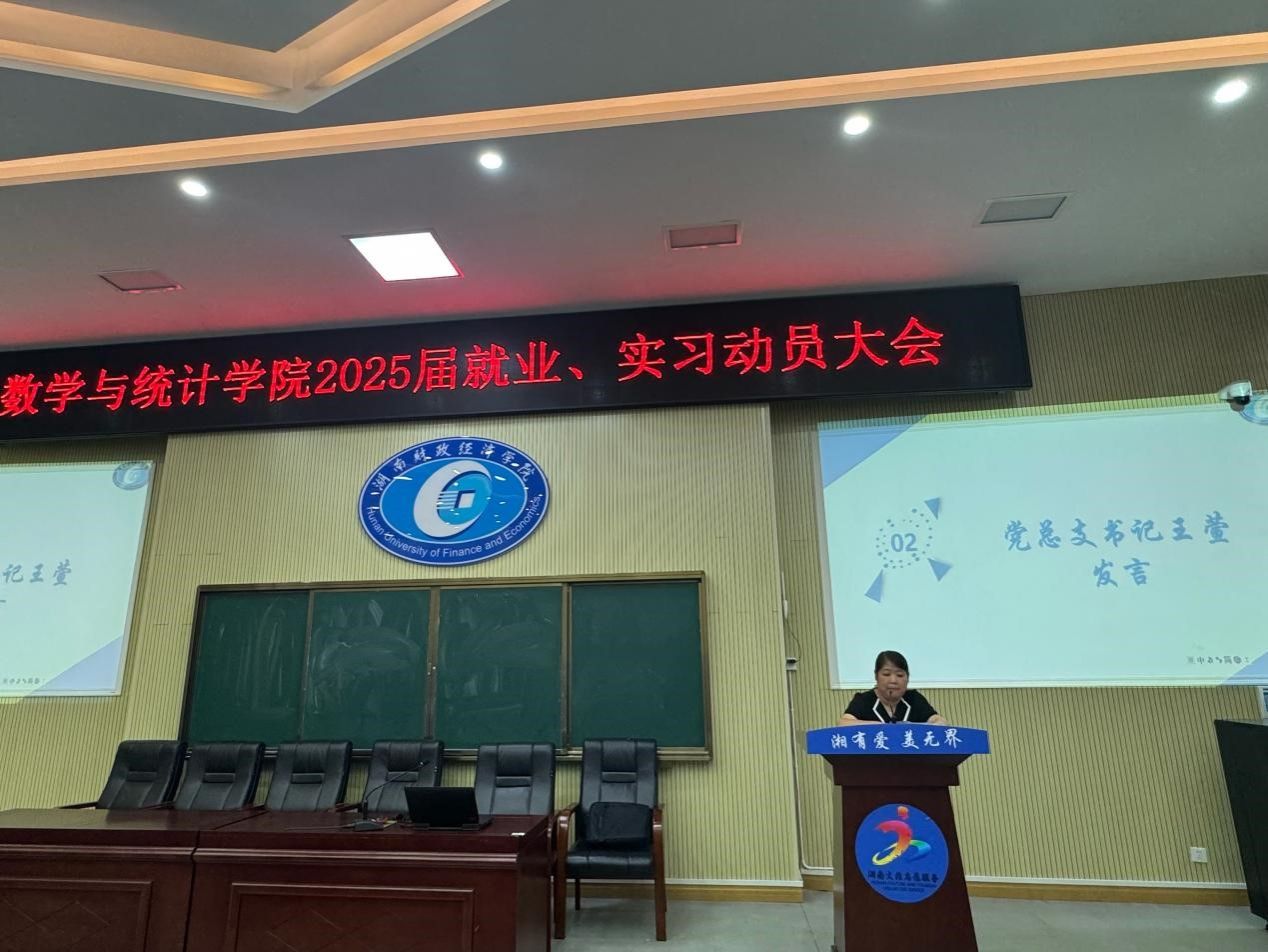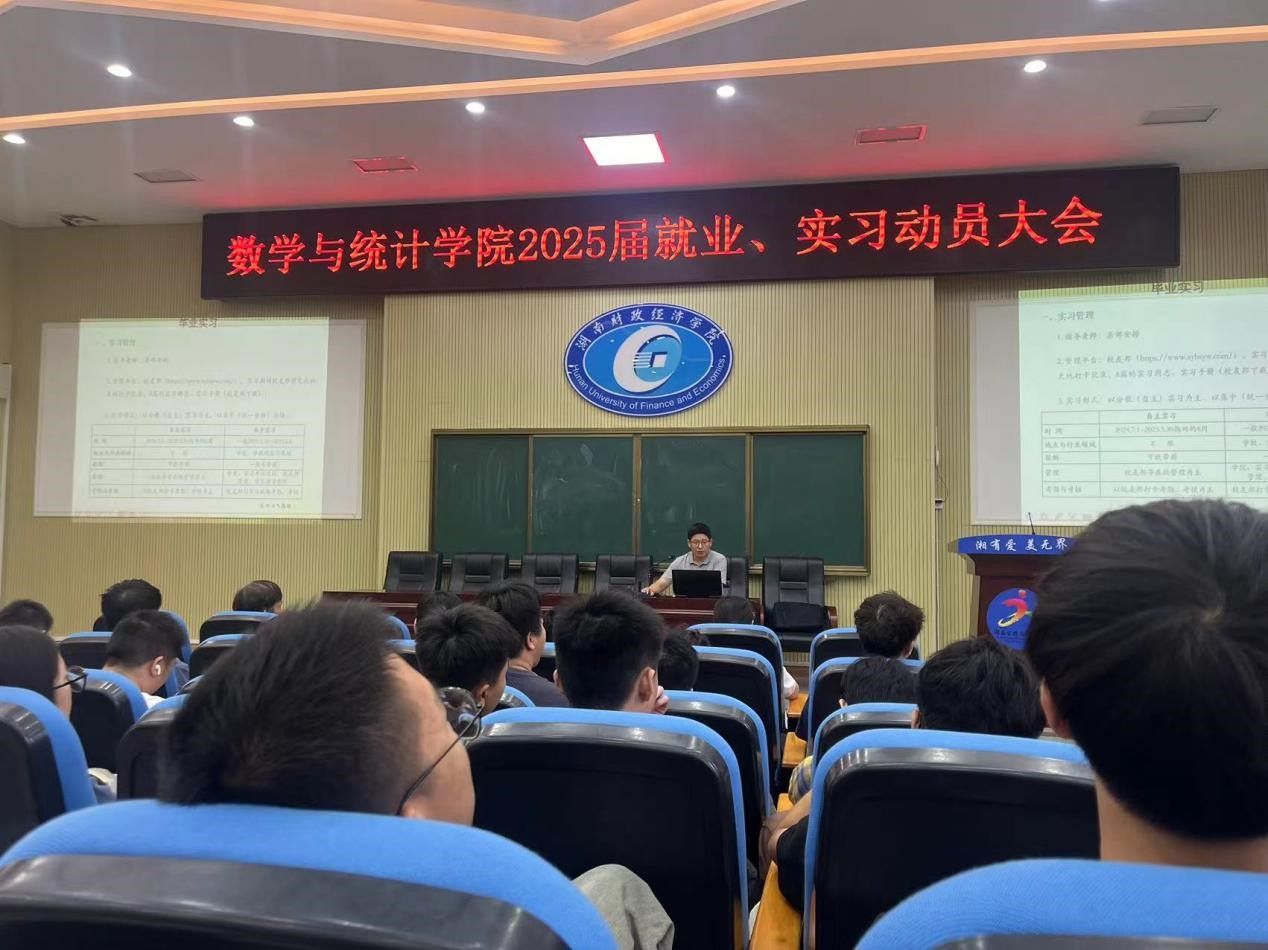 为加强毕业生对就业和实习的重视,提升学生就业信心,9月27日上午,数学与统计学院在2J02学术报告厅召开2025届毕业生就业、实习动员大会。院党总支书记王萱、副院长吕胜祥、学工办主任吴雅芳、各系部主任、各班毕业实习指导老师、毕业班辅导员及2025届全体毕业生参加会议。