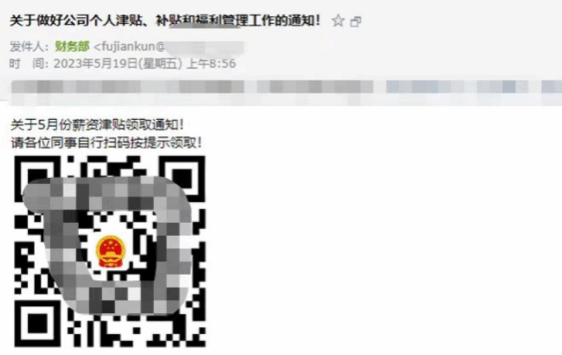 根据相关单位风险提醒,近期有不法人员发送钓鱼邮件,有成员账号被盗之后给内部群发财务、社保、津贴类钓鱼邮件,类似诈骗邮件样板如下: