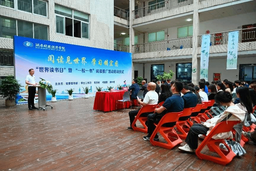 潘爱民在致辞中表示,作为一所办学近百年的财经院校,深知阅读对专业素养和人文情怀的双重滋养。从经济学典籍中汲取智慧,在文学佳作里感悟人生,这正是我们倡导"一校一书"的初心。他强调,作为财经人,既要读懂数据背后的规律,也要理解人性深处的共鸣;既要掌握专业的分析方法,也要培养开阔的人文视野。希望各职能部门、二级学院要以此活动为契机,把“阅读见世界 学习铸宏图”读书系列活动作为深入学习贯彻习近平文化思想,贯彻落实全国、全省教育大会精神,深入开展全民阅读行动,持续推进书香校园建设,大力传承中华优秀传统文化,助力提升我校人才培养质量,促进beat365官网高质量发展,认真做好宣传发动和组织领导工作,积极搭建平台,创新活动形式,广泛调动全校师生参与活动的积极性、主动性。广大师生要以财经人的敏锐,在阅读中捕捉时代发展的密码;以读书人的襟怀,在经典中涵养"为天地立心"的担当;以"一校一书",延伸为人生路上的"一生一书"。