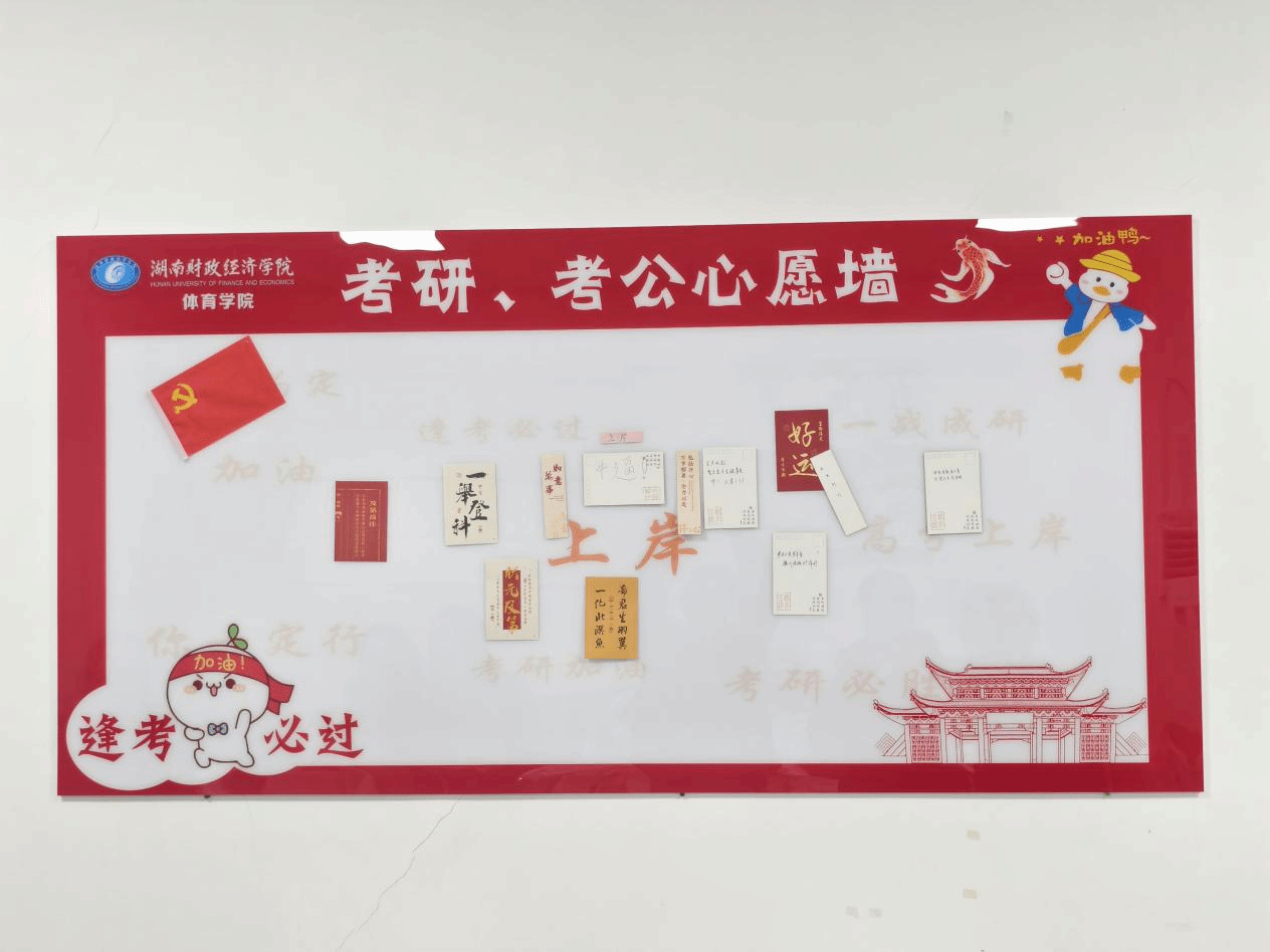会议特别设置了心意传递环节,体育学院为每一位考研考公学子发放了精心定制的学院特色礼物,深深体现了学院对学子们的关怀和支持。最后,同学们将满载着希望和祝福的心愿贴在了位于体育馆105自习室和239自习室的心愿墙上,象征着同学们的愿望和祝福将伴随他们走向辉煌的未来。