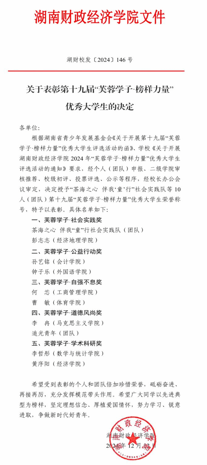追光而遇,沐光而行。曹敏同学用自己的优秀事迹向我们诠释了芙蓉学子自强不息的风采,愿广大学子以优秀人物为标杆,汲取榜样智慧与力量,在未来人生征程中不负韶华,砥砺前行!