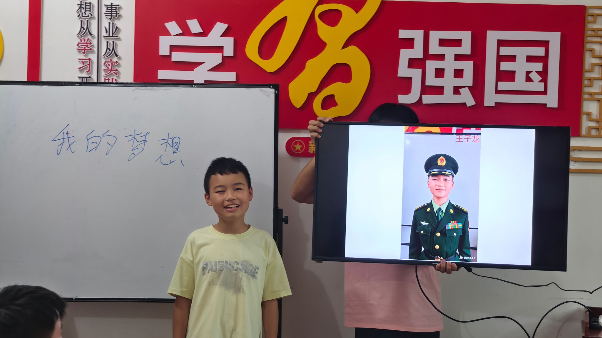 活动当天,孩子们期待的课堂正式开始。志愿者将孩子们前一天描述的梦想,运用AI图像生成技术,精心制作成一张张生动的“未来画像”。“哇!这真的是未来的我吗?”当屏幕上逐一呈现出身着军装英姿飒爽的“小战士”、医院里温柔细致的“小护士”……教室里爆发出阵阵惊叹与欢呼。AI技术的神奇魅力,将抽象的梦想瞬间变得清晰可见,极大地激发了孩子们对未来的向往和为之努力的决心。