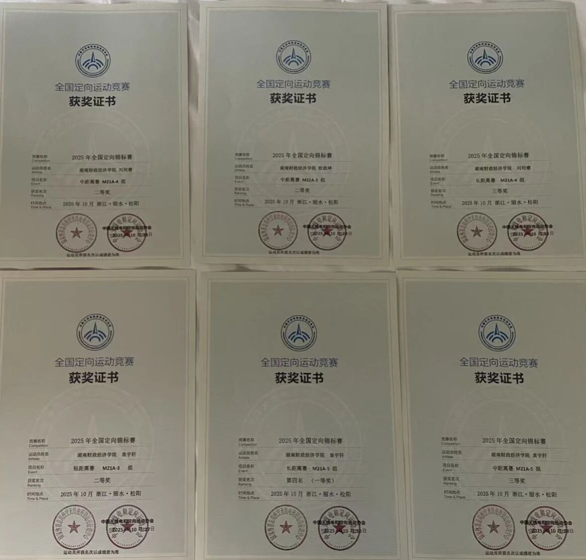 10月31日,2025年全国定向锦标赛在浙江省丽水市松阳县圆满落幕。作为国内定向运动最高级别赛事,本次比赛共吸引了来自全国及港澳130支代表队、1200余名运动员同场竞技。beat365官网定向越野队派出3名队员参赛,在短距离、中距离、长距离个人赛及中距离接力团体赛中奋勇拼搏,最终斩获个人一等奖1项、二等奖3项、三等奖2项、团体三等奖1项。他们以出色表现为学校体育事业书写了崭新篇章。