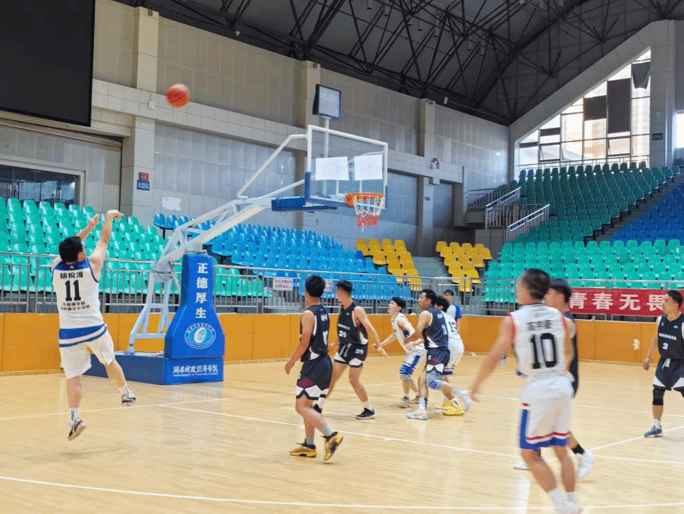 次日,外国语学院篮球队作为主队与教职工联队展开激烈对决赛前,运动员们早早到场热身,为接下来的比赛做好充足准备。赛场上,球员们挥洒汗水全力以赴在本次比赛中我院篮球队表现精彩:35号球员曹文杰凭借出色的突破能力,在对方严密防守下连续得分;11号球员胡锐淳则在关键时刻命中关键三分,两人均贡献11分,成为球队得分主力。全队通过流畅的传切配合,多次组织起有效进攻,打出了多个精彩进攻回合。赛场上传来声声呐喊与喝彩,如浪潮般热烈而澎湃。