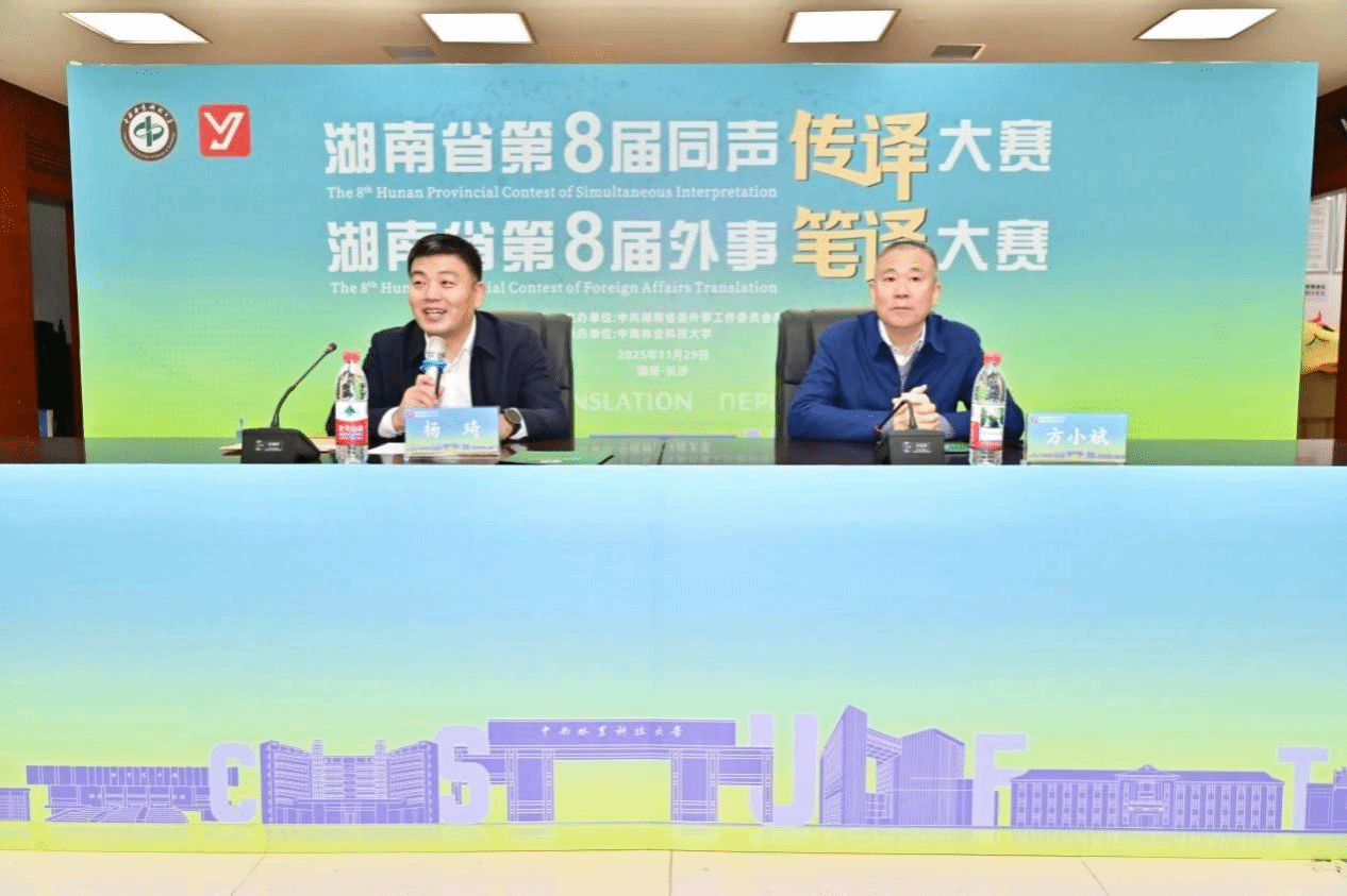 (本网讯)11月29日,由中共湖南省委外事工作委员会办公室主办的湖南省第八届外事笔译大赛在中南林业科技大学举行。本次大赛旨在为湖南省外向型经济发展储备高水平外语人才与外事笔译人才,以进一步推进全省外事翻译人才库建设,具有专业性强、选拔标准高的特点。