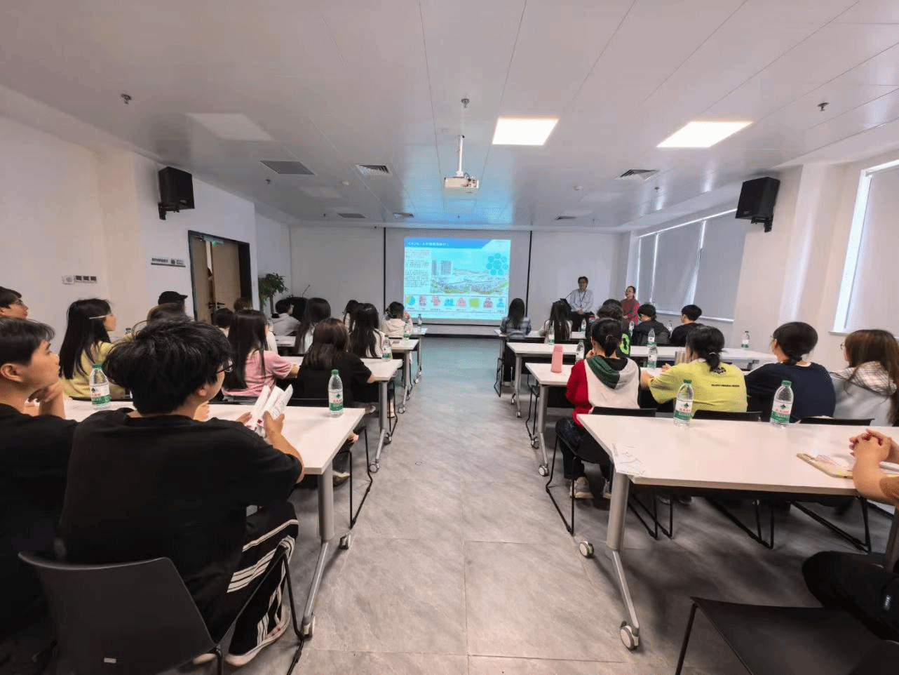 在随后的提问环节中,同学们踊跃举手,条理清晰地提出自己的疑问。整个答疑过程中,手塚先生不仅用扎实的专业知识为同学们拨开迷雾,更以职场前辈的视角,分享了许多课本外的宝贵经验。现场互动频繁,思维的火花不断碰撞,交流氛围空前热烈。