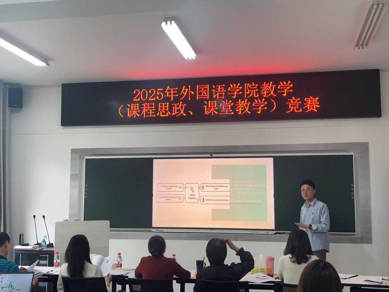 (本网讯)为落实立德树人根本任务,加强外语课程思政建设,全面提升学院教师课程思政教学能力,高质量推进课堂教学改革,外国语学院于4月16日成功举办2025年课堂教学竞赛。本次竞赛经前期各系选拔后,共9位选手参加院赛,充分展现了外语教学与思政教育的有机融合。