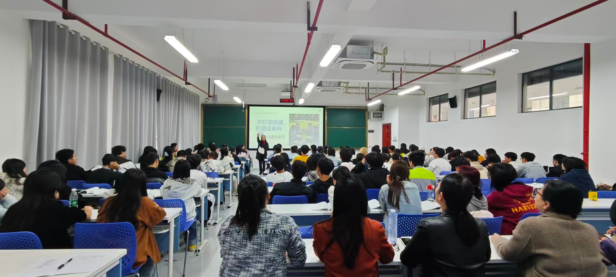 课程围绕“积极倾听”、“有效表达”与“沟通整合”三大核心模块展开。曾鹃老师通过破冰游戏迅速营造开放氛围,结合典型案例解析沟通中的常见误区,借助角色扮演引导学生亲身体验不同沟通方式的实践效果,并援引经典心理学研究为沟通策略提供理论支持。整堂课教学设计环环相扣,教学方法多元灵活,实现了知识传授、能力培养与价值引导的有机统一。