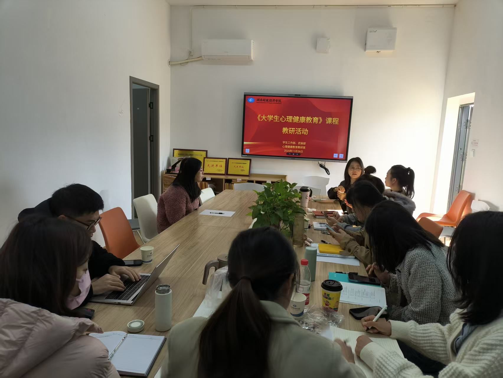 (本网讯)为深化教学改革,提升课堂教学质量,促进教师间的专业交流与协作,11月26日上午九点,心理健康教研室在第一教学楼南1401教室成功举办了《大学生心理健康教程》集体说课教研活动。本次活动由教研室全体教师共同参与,围绕教材的十个章节进行了深入的说课分享与研讨。
