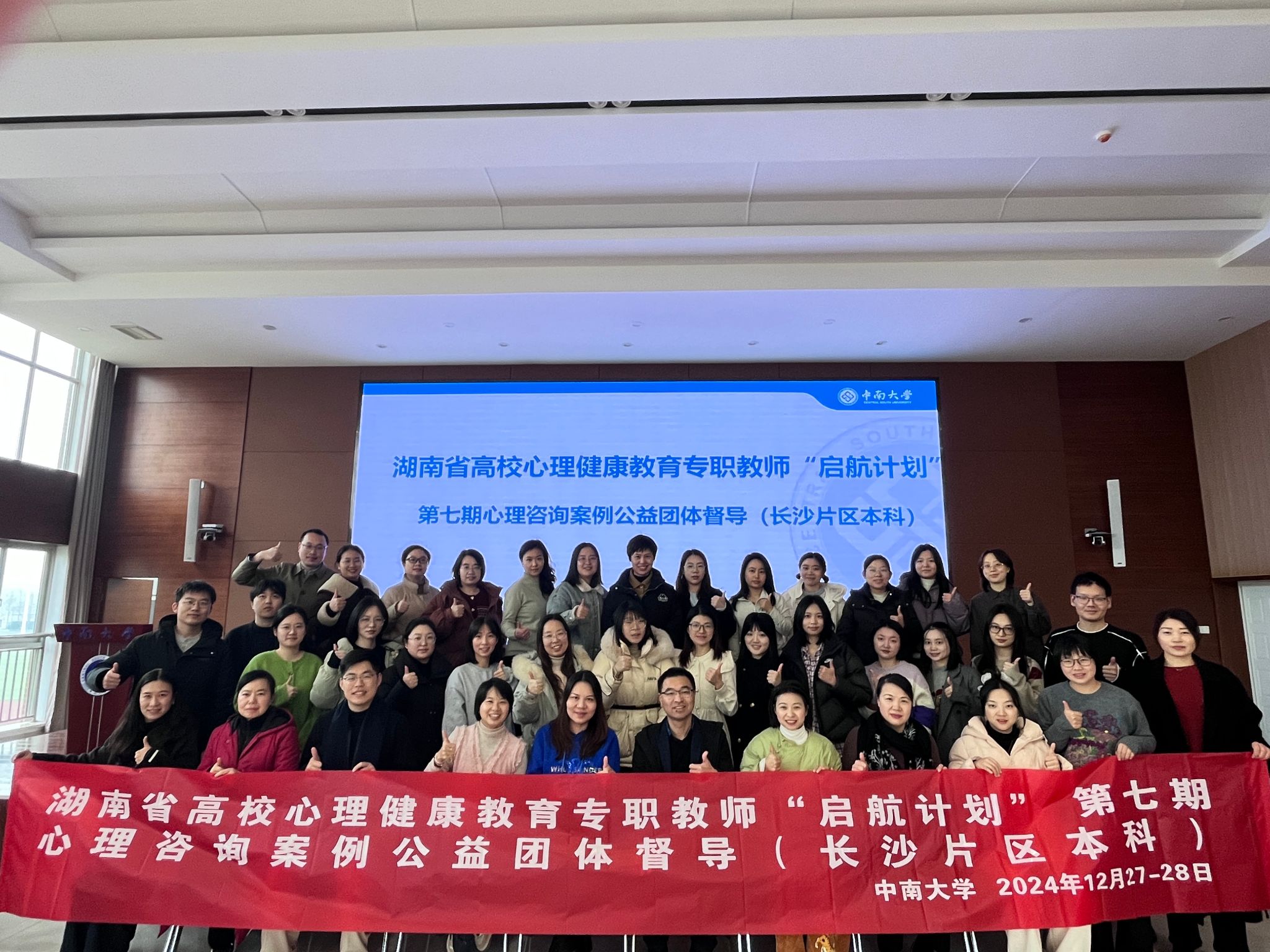 (本网讯)12月27日-28日,湖南省高校心理健康教育专职教师“启航计划”第七期心理咨询案例公益团体督导在中南大学顺利开展。本次督导由中国心理学会注册督导师、应用心理学博士、湖南工商大学学生心理健康教育中心主任戴吉副教授担任督导师,中国心理学会注册心理师、应用心理学博士、中南大学大学生心理健康教育中心副主任谭鑫副教授担任助理督导师。beat365官网9位咨询师和长沙15所高校心理咨询师共40余人参加。